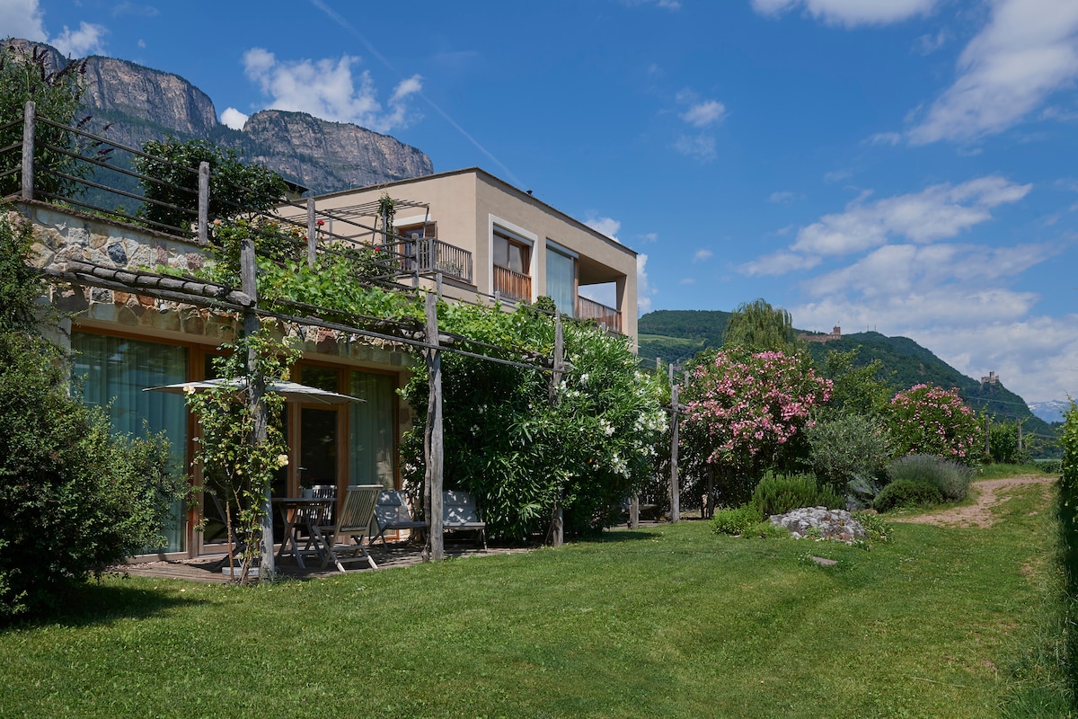 Unser großzügiges Studio bietet einen herrlichen Panoramablick über die Weingärten – bis hinunter nach Bozen und auf die Dolomiten. Ein lichtdurchfluteter, behaglicher Raum mit Kochnische und extra großem Badezimmer. Genießen Sie das Gefühl einer Suite – und zugleich die Vorzüge einer Ferienwohnung.