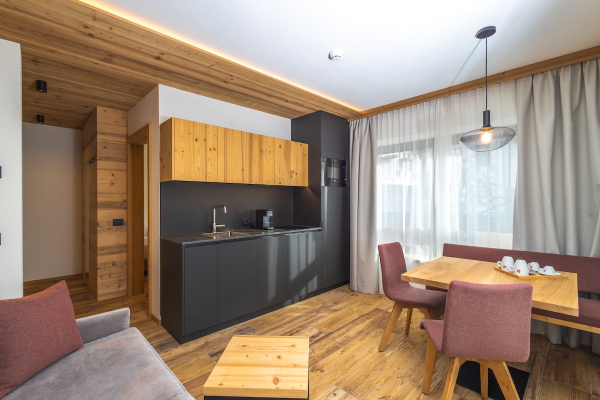 Welcome to our Mountainstyle Studio, furnished in fine pine wood and 30-40 m² in size. The studio offers a fully equipped kitchenette, a dining table and a balcony or terrace with spectacular views of the Puster Valley or the Valdaora/Olang mountain range. Located directly on the slopes and hiking trails, the studio is perfect for outdoor enthusiasts - summer and winter. *For offers with children please contact us directly*