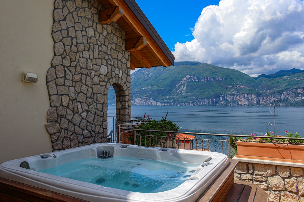 豪华公寚1私人按摩浴缸和加尔达湖景观