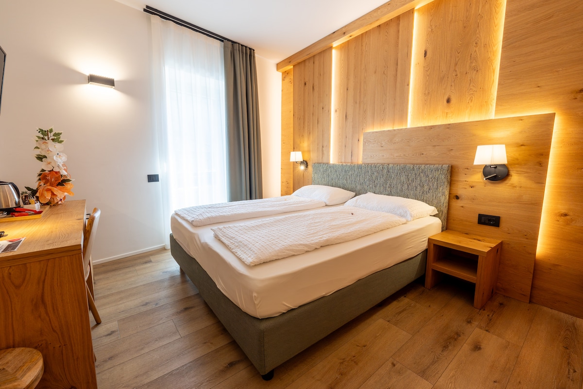 Enjoy breakfast included and access to a scenic outdoor swimming pool in this spacious 25 m² double room with breathtaking mountain views. Designed for comfort, it features soundproof walls, a minibar, a private balcony, and a modern bathroom with a walk-in shower. Furnished with one double bed, it offers a restful and relaxing stay. City tax not included; payable upon arrival or check-out.
