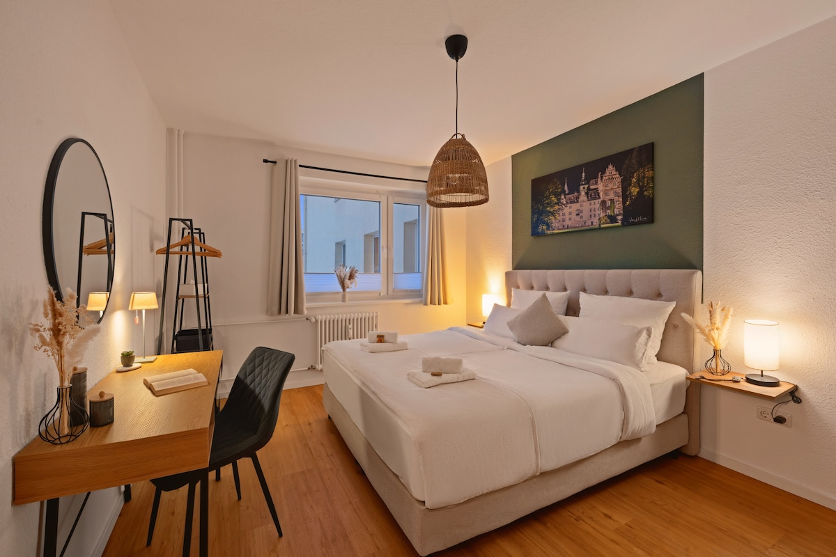 Erlebe Wolfsburg direkt im Herzen der Stadt! Unser helles, modernes Studio in der Porschestraße bietet alles, was du für einen entspannten Aufenthalt brauchst. Mit einem Boxspringbett, Smart-TV und einer voll ausgestatteten Küchenzeile mit Tresen fühlst du dich wie zu Hause. Zentral gelegen, mit kurzen Wegen zu Shops, Restaurants und Attraktionen, ist es ideal für Paare, Geschäftsreisende oder kleine Familien. Handtücher, Bettwäsche und mehr sind inklusive – einfach ankommen und wohlfühlen!