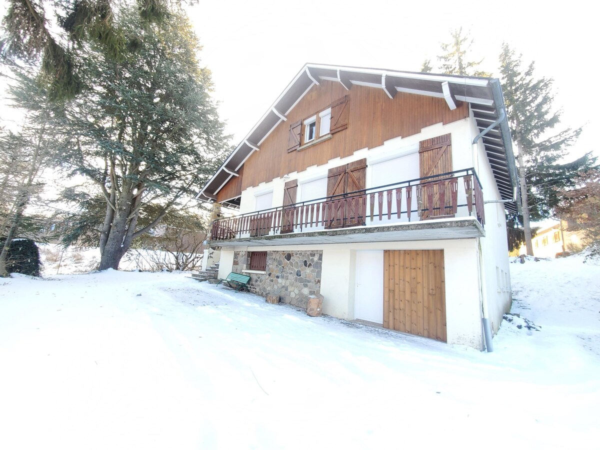 Notre chalet est situé dans le hameau montagnard des Boissines, situé à 1150M d'altitude et offre une vue spectaculaire sur les monts du Cantal. Départ depuis la maison vers les sentiers de randonnée, et à 6 min de la station du Lioran. Surface de 110M2 avec cuisine, salon, 2 salles de bain, 2 wc, 4 chambres (dont une ouverte en mezzanine) avec lits 2 places. Terrasse, garage, Terrain 3500M2.