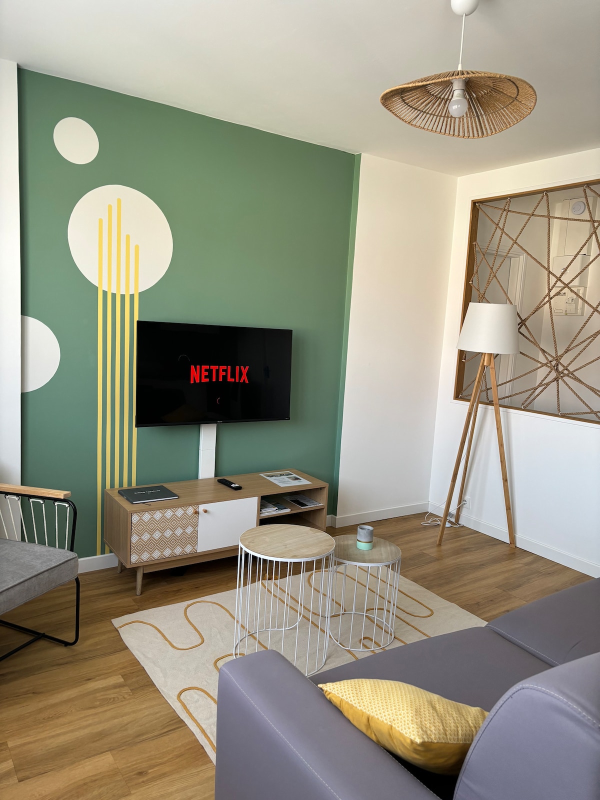 Agréable appartement de 30m2, situé dans un quartier calme et familial, à 10 minutes à pied du centre ville de Montluçon et du centre St-Jacques. Profitez de l’ambiance apaisante du séjour donnant sur un balcon privé et aménagé. Vous pourrez ainsi admirer une vue panoramique sur la ville ! Une TV HD/Netflix, le wifi (gratuit) et un climatiseur portatif sont mis à votre disposition. Possibilité de stationnement gratuit dans la rue. Idéal pour un séjour professionnel, en couple ou seul(e).