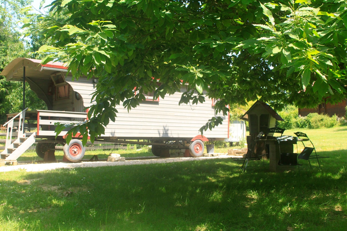 Authentique et fabriquée en 2011 en Roumanie, nous sommes excité d’accueillir notre nouvel hébergement ! Le roulotte se situe à l'extrémité d'un hameaux de 250 habitants, à 3,5 km de Cajarc. Vous pourrez apprécier la tranquillité, le calme, la verdure ainsi que le panorama des lieux. Il n'y a aucun commerce dans le hameau. Mais vous trouverez tous à Cajarc (épicerie fines, bouchers/traiteurs, caviste, supermarché, pharmacie, etc). Hâte de vous recevoir très prochainement !