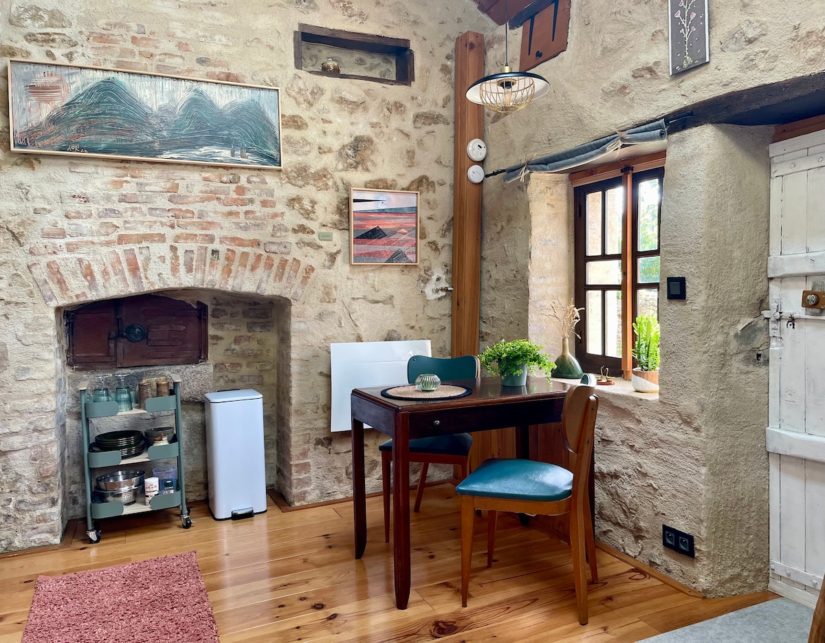 Besoin de déconnecter dans la nature, de confort douillet au coin du feu ? Cette ancienne petite chaumière en pierre et bois, rustique et cosy est faite pour vous ! Le bain nordique jacuzzi privatif et le sauna panoramique est à votre disposition tout au long de votre séjour. Avec sa cheminée, sa terrasse de lauzes, son calme : l'endroit idéal pour faire une vraie pause été comme hiver. Cocooning en amoureux, activités nature en forêt et sur les plateaux auvergnats ! Time to relax !