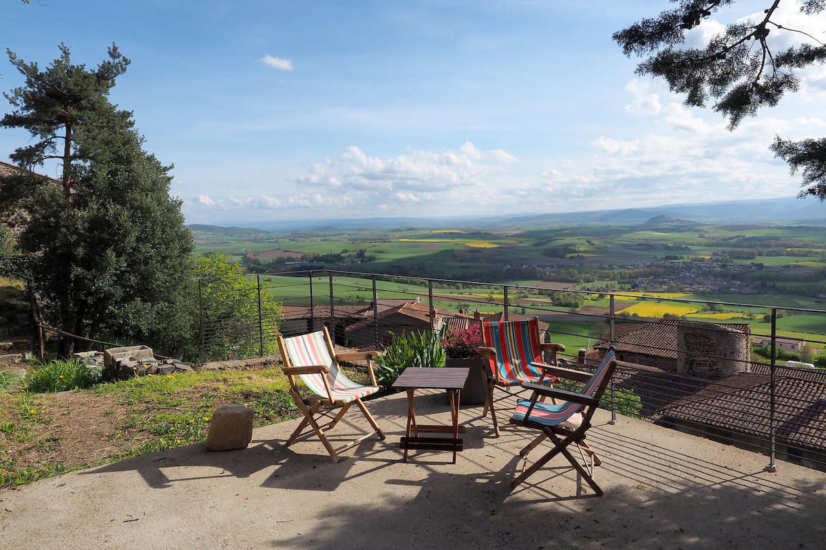 La plus haute maison d'Usson, un des plus beaux villages de France, 2 ch et un séjour ayant chacun un accès sur l'extérieur , 3 terrasses sur 3 niveaux et 3 orientations(est,sud et ouest,pour le coucher de soleil!),dont 2 avec une vue à 180° sur l'Auvergne et ses volcans. Pour plus d'indépendance,une 3ème chambre,avec une sdb ,dans la petite maison voisine, sont proposées à 60€ la nuit,au-delà de 6 voyageurs(capacité max de la maison principale) Commerces de base à 5km Alt 574m A 75 à 10mn