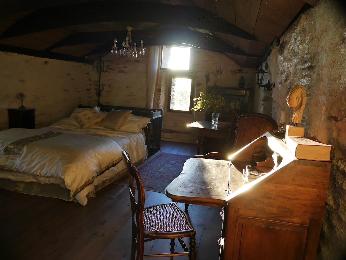 A blissfully peaceful and beautiful retreat. The renovated cottage is a small 2 storey house perfect for 2 people, in a magnificent estate of 94 acres of chestnut forest, sublime experience for nature lovers, who want to get away from the hustle and bustle, wonderful walking trails, magnificent views. Natural small pool on the property but there is a sublime swimming spot at 9km. Bedroom and wood heater upstairs, bathroom, separate toilet and open kitchen downstairs. Private terrace.