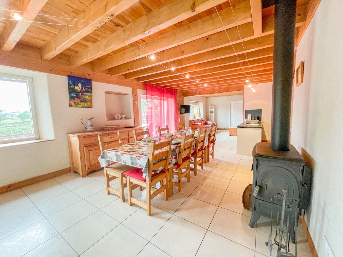 Maison forézienne en pisé, vaste espace vert aménagé arboré, moins de 10kms A89, proche Bâtie d'Urfé, Pommiers, volerie du Forez, 1h Lyon ou Clermont Ferrand, 20min Montbrison( plus beau marché de France 2019) 50min St Etienne. Très appréciée pour halte sur la route des vacances ou séjours: visites du patrimoine du Roannais, du Forez, randos plaine ou monts du Forez, découverte de la gastronomie forézienne. Un espace détente pour petits et grands, balançoires pour les enfants. A bientôt...