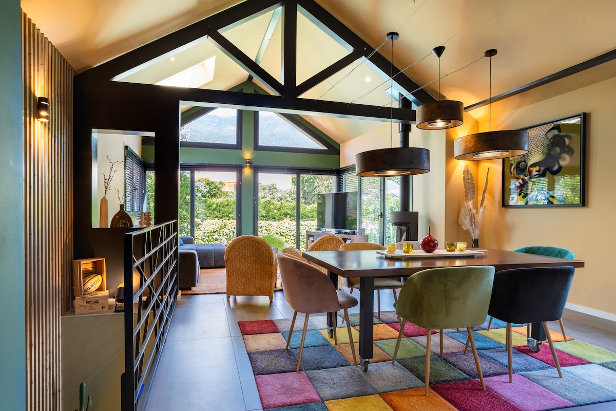Petit CHALET en madriers massifs de montagne plain-pied, au calme, dans le verger de pommes au cœur de la douceur du Bugey...ses villages, vignobles, cascades et lacs. Cuisine/SDB privées. Vue dégagée sur le Colombier -La Dent du chat et le Mont Blanc, dans une immense propriété VUE à 360 degrés ! Tout confort pour un couple. Linge de maison, de toilette et de lit fournis.. Coeur de ville 15 minutes à pieds. À votre disposition pour un BEAU SÉJOUR fruits du verger, jus de pomme et légumes.