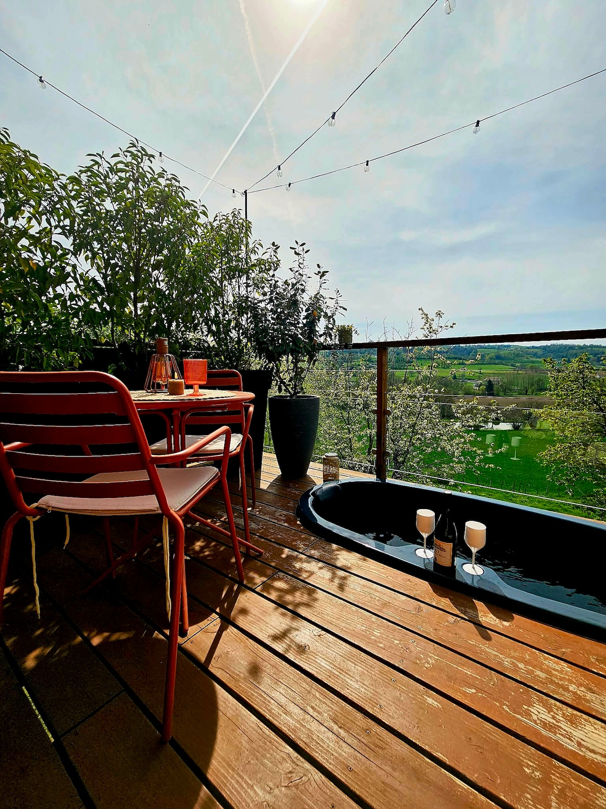 ❄️ Winter is magical here: enjoy the contrast between the crisp fresh air & your steaming 37°C private hot tub! Stunning views, a cozy interior, and a video projector. A peaceful nature escape near Lake Paladru ✨ Celebrating something special? Elevate your stay with our optional “Romantic Package” (rose petals, LED candles), “Sparkling Evening” (with champagne), or “Birthday Package.” Perfect for surprising your loved one! (Details and pricing can be found in the “Other notes” section below 👇)