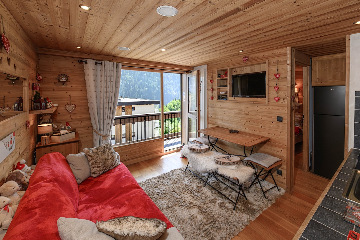 位于霞慕尼市中心,景观、装饰和露台!