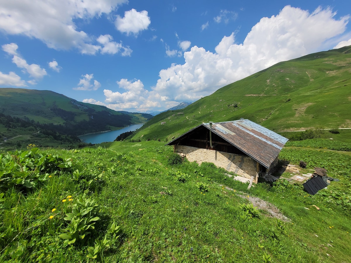 Ancien caveau a lait rénové,dans un site isolé,pas de voisinage. La montagnette se situe a 4km du village de saint jean de Belleville,Elle est constitué d une seule pièce principale avec mezzanine.Un coin repas avec table haute ,un coin canapé et une salle de bain se situe sur la partie inférieur.A l étage sur la mezzanine la partie couchages avec deux grand lits ou 1 grand lits avec deux petit lits(90/160). Également un filet de bateau pouvant servir de hamac pour lecture and chill.