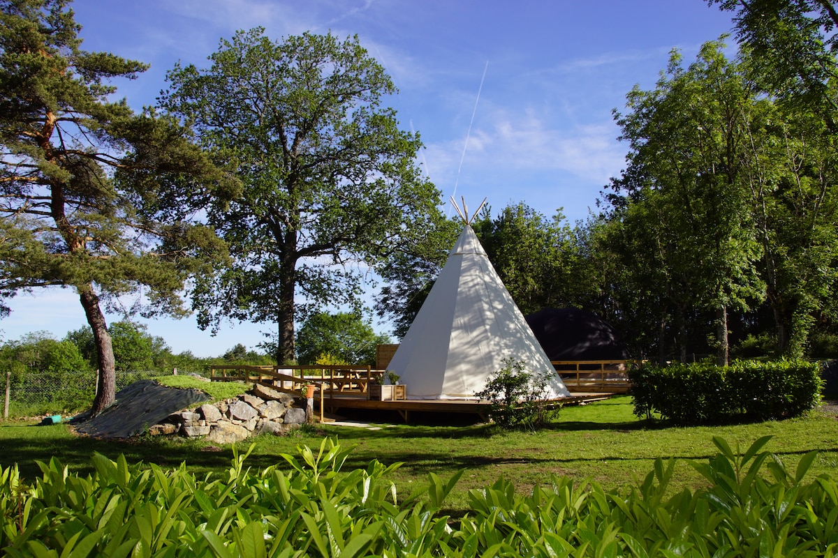 Jouez aux aventuriers dans notre Tipi indien grand confort pour 2 pers avec son spa privatif en accès illimité et petit déjeuner inclus Faites l’expérience d’une ou plusieurs nuits insolites en TIPI indien du Domaine Saint Cerice et appréciez l’atmosphère unique de cette habitat nomade avec un lit de grand confort. Les sanitaires et douches chauffés se trouvent à quelques mètres de votre TIPI. Vous disposez de votre Spa privatif en accès illimité devant votre hébergement et du petit déjeuner