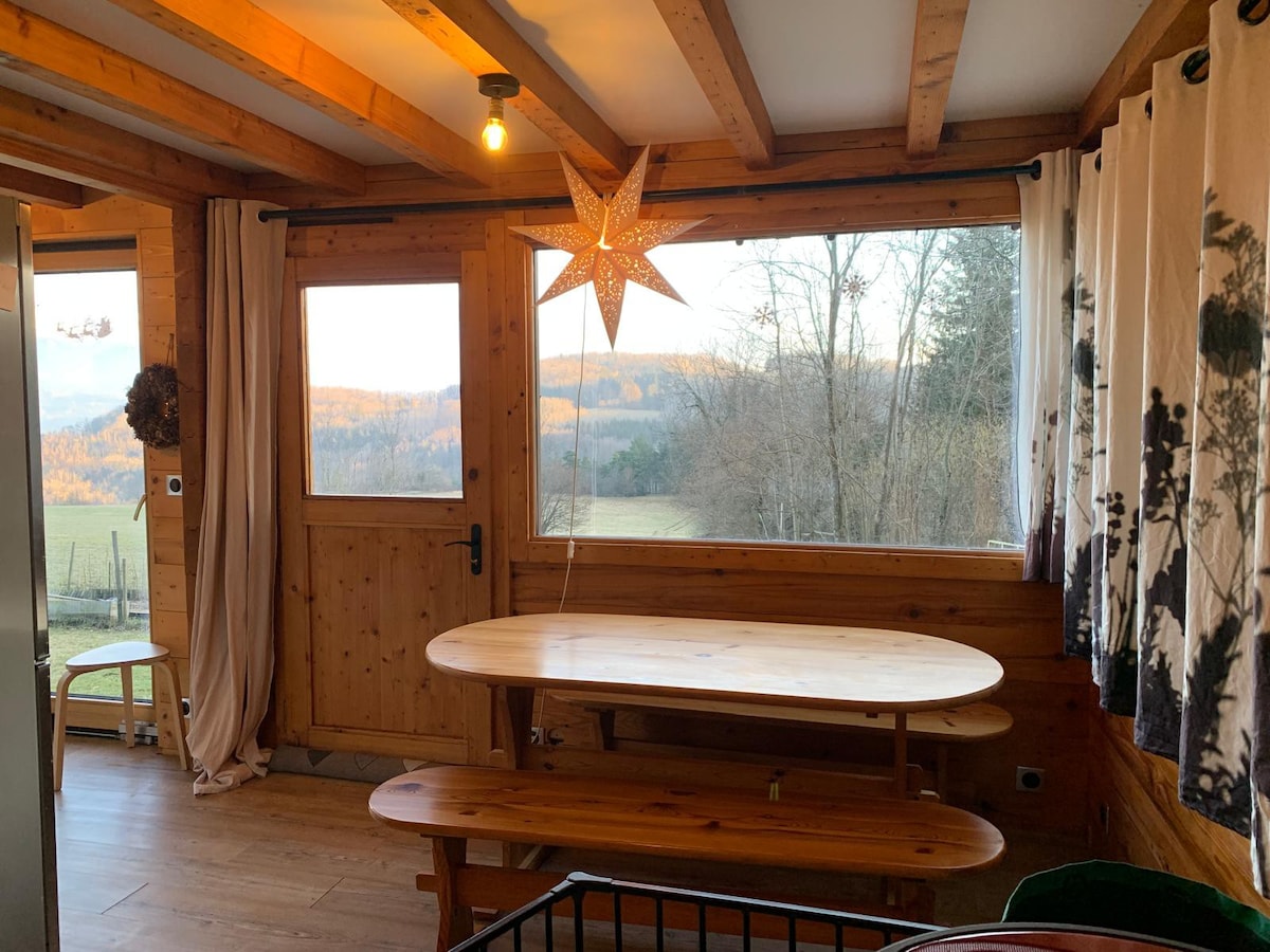 Situé dans un village calme au coeur du Parc régional de la Chartreuse, venez découvrir notre gîte atypique et sa vue exceptionnelle sur l'ensemble du massif de la Chartreuse. Au travers de sa fenêtre penchée, vous vous sentirez en pleine nature même à l'intérieur ! Un véritable coin de paradis pour se ressourcer et/ou pratiquer des activités de plein air (vélo, vtt, randonnée pédestre, trail...). Commerce alimentaire au centre du village à 10 min à pied. Piscine à disposition selon la saison.