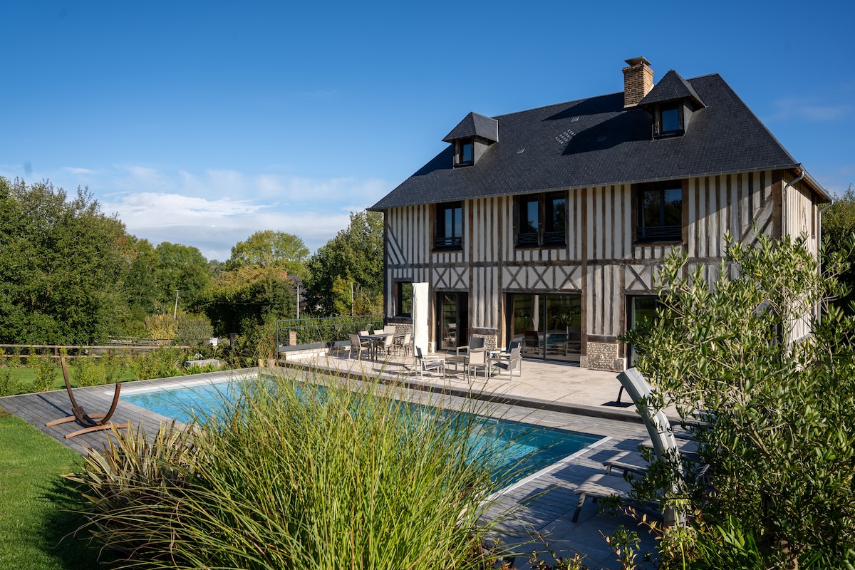 With its south-facing terrace and large swimming pool, 5 golf courses and the beaches of Deauville 20 minutes away, La Boisselière is ideal for a relaxing stay with family or friends. Spacious, bathed in light, this large traditional Norman house offers all contemporary comfort: underfloor heating on the ground floor and hot water radiators upstairs, optical fiber internet connection, 4K connected televisions, large American fridge, charging station for electric vehicles, etc.