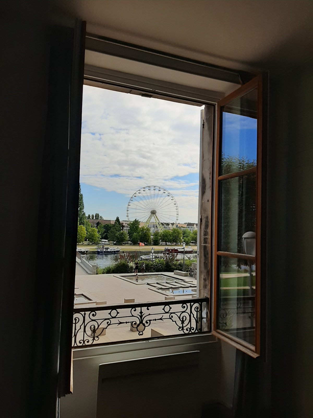 Notre appartement est située en plein coeur du centre ville, juste à côté des quais, de la place de la mairie et de l'horloge , dans une rue à sens unique calme et peu passante. La localisation est idéale pour visiter la ville à pied et profiter des commerces du centre ville à proximité (boulangerie, chocolaterie, cave à vin, bar à vin, restaurants, boutiques etc.).