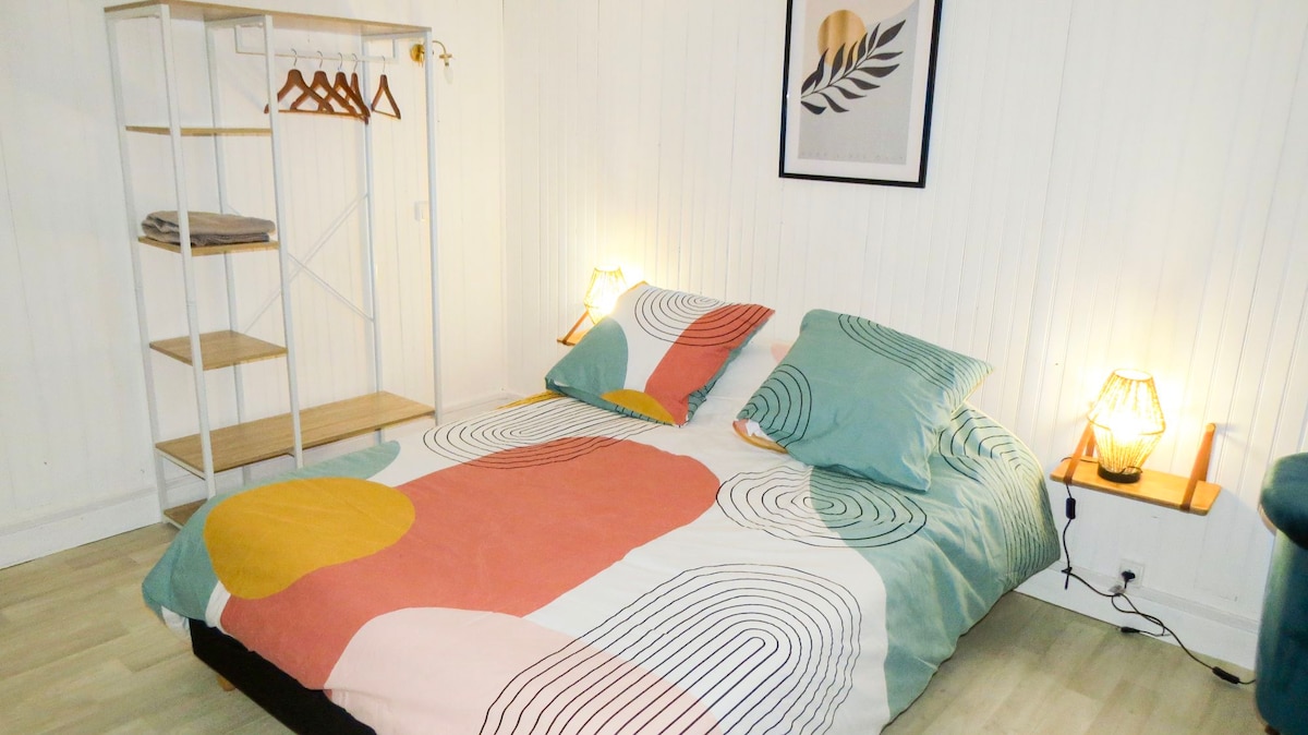 Profitez d'un logement élégant et central, paisible, neuf, tout confort au rez-de-chaussée de ma maison. Situe à 5 min à pieds des quais d'Auxerre, 10 min à pieds du centre ville, 15 min de la gare , 15 min de la sortie A6. Commerces à 10 min à pieds. C'est aussi un point de départ idéal pour decouvrir la campagne icaunaise et le vignoble Chablisien(20 min), Saint Fargeau(40 min) Lit parapluie, rehausseur sur demande , petite terrasse , place de parking privée