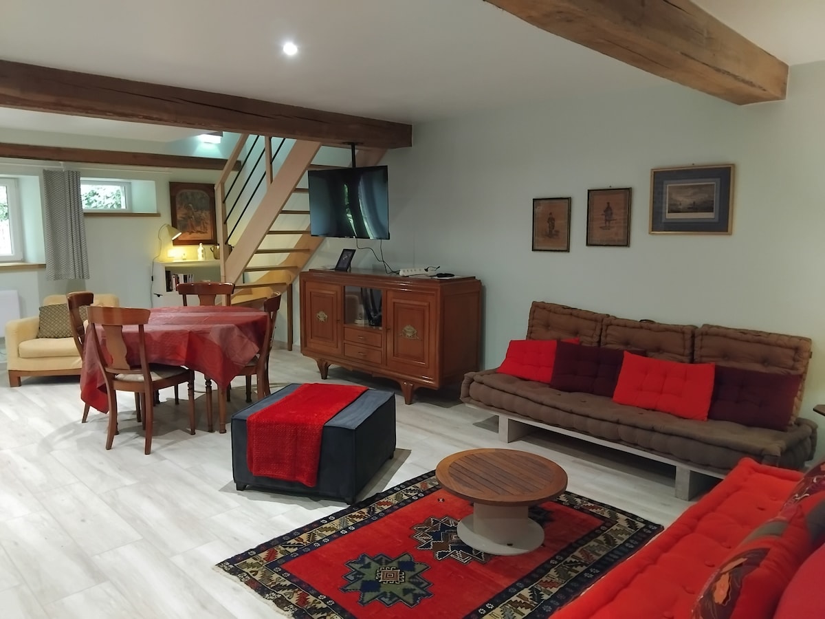 Escapade haut de game et de bien-être en Bourgogne Offrez-vous une parenthèse hors du temps dans notre gîte romantique haut de gamme, conçu pour la détente ,l’intimité et le repos. Profitez d’un spa privatif avec jacuzzi et sauna, ainsi qu’écran cinema de 2 mètres pour des soirées cocooning inoubliables. Maison indépendantes avec jardin privé, pergola, parking et arrivée autonome. 🌿 Situé en pleine campagne, au rythme de la nature et de la vie rurale.( tracteur chien cheveau …)