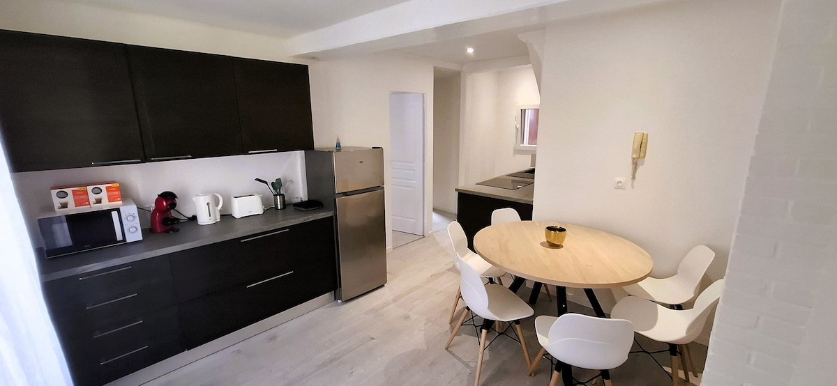 Notre appartement est idéalement situé en plein coeur du centre historique et à 2 pas de la Tour de l'Horloge. Dans cet ancien hôtel particulier, installé au RDC avec sa terrasse privative, vous pourrez profiter du calme en étant proche de l'animation du centre ville. Entièrement rénové, ce logement dispose d'une chambre et d'un canapé convertible très confortable pour un séjour à 2 ou en famille. (2 adultes et 2 enfants)