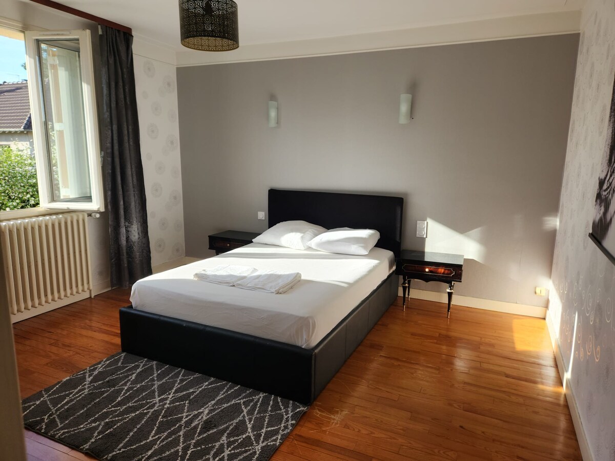 1 chambre avec lit de 160cm ,le 2ème couchage 1 canapé 140cm avec matelas 19 cm d épaisseur dans la pièce de vie. 1 pièce de vie de 50m2 avec cuisine ouverte. salle d eau avec grande douche. cour avec salon de jardin et balançoires à votre disposition. Garage et jardin clos de murs située à 300m des bords de l Yonne et du centre ville. les propriétaires sont dans la même cour