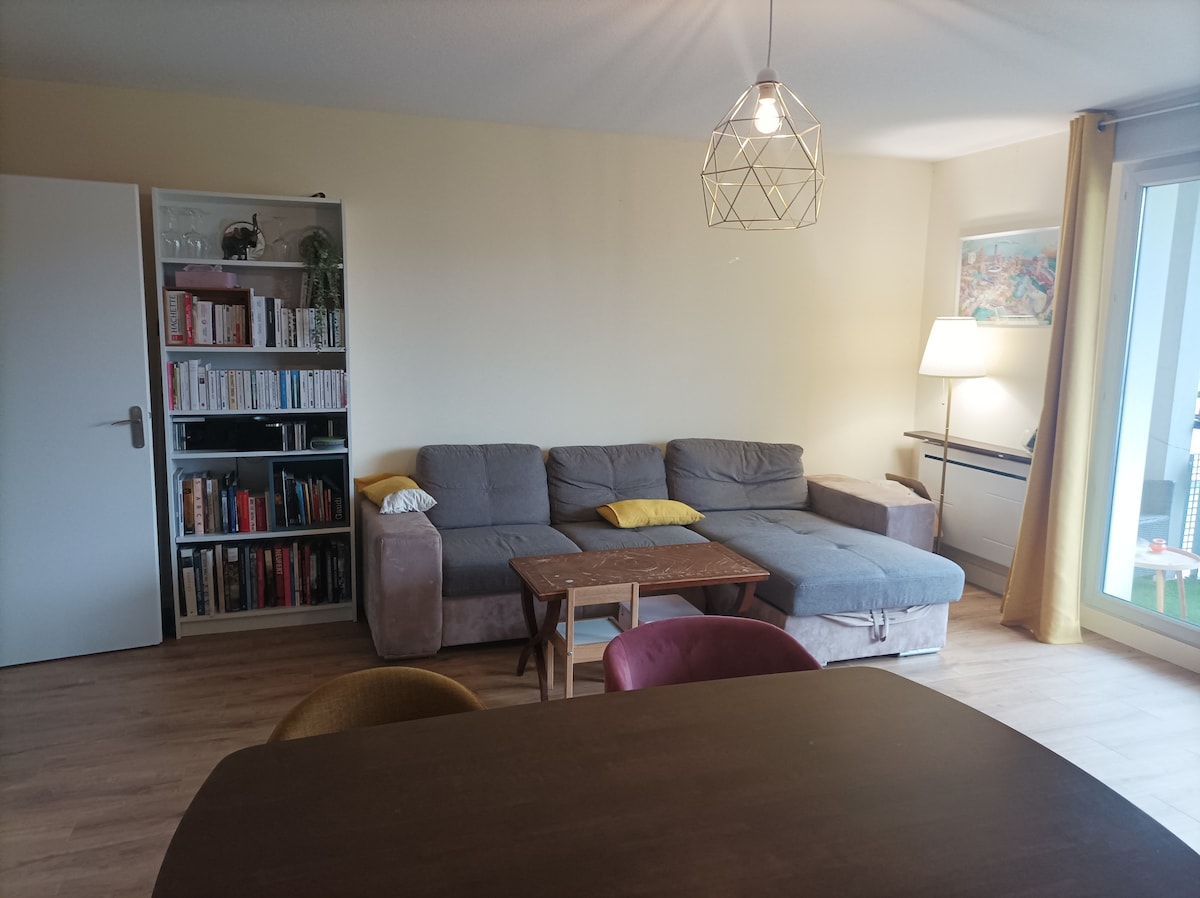Joli type 1 bis refait à neuf de 29m² : -2 balcons sans vis-à-vis (table et chaises) -1 place de parking sécurisée. -TV connectée / Netflix offert. -Ligne de bus aux pieds de l'immeuble. -Station de métro à 1 km (15minutes à pied ) Toulouse centre 15 minutes seulement en métro. -Nombreux commerces (pharmacie, boulangerie, supermarché, restaurants..). -Linge de lit et serviettes de bains à disposition. -Kit de repassage -sèche cheveux -Thé-café offert -shampoing gel douche offert