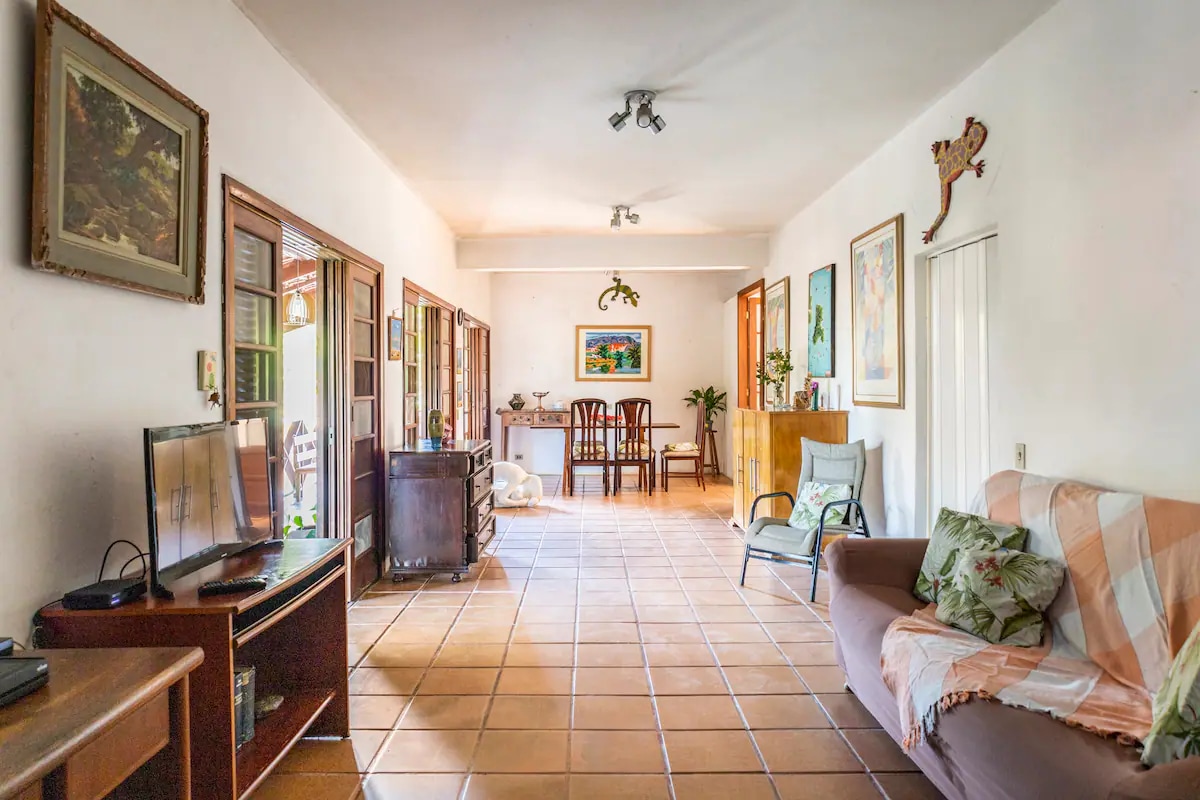 ✨ Vista deslumbrante para o mar e as montanhas, cercada pela natureza e pelo canto de pássaros silvestres. A poucos minutos da Praia do Perequê, restaurantes, shoppings, pier de embarque e agências de turismo e esportes náuticos. Um lugar tão agradável que, às vezes, você vai querer ficar em casa o tempo todo.