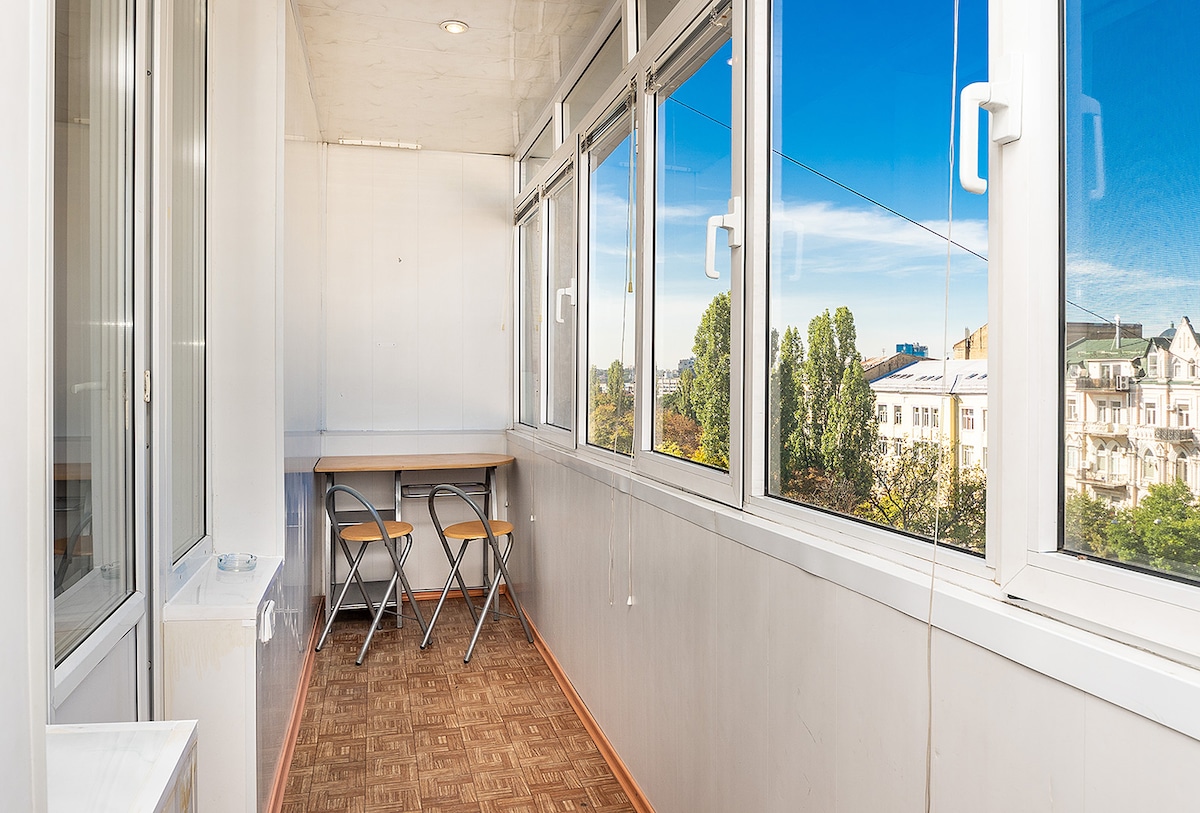 Modern two-bedroom apartment, located in the very center of the capital, just 15 meters from Independence Square. The apartment is completely at guests' disposal, a living room, two bedrooms, a kitchen and a bathroom. The apartment has everything you need for cooking, TV, washing machine, Wi-Fi, two balconies, one of them overlooking the Maidan.