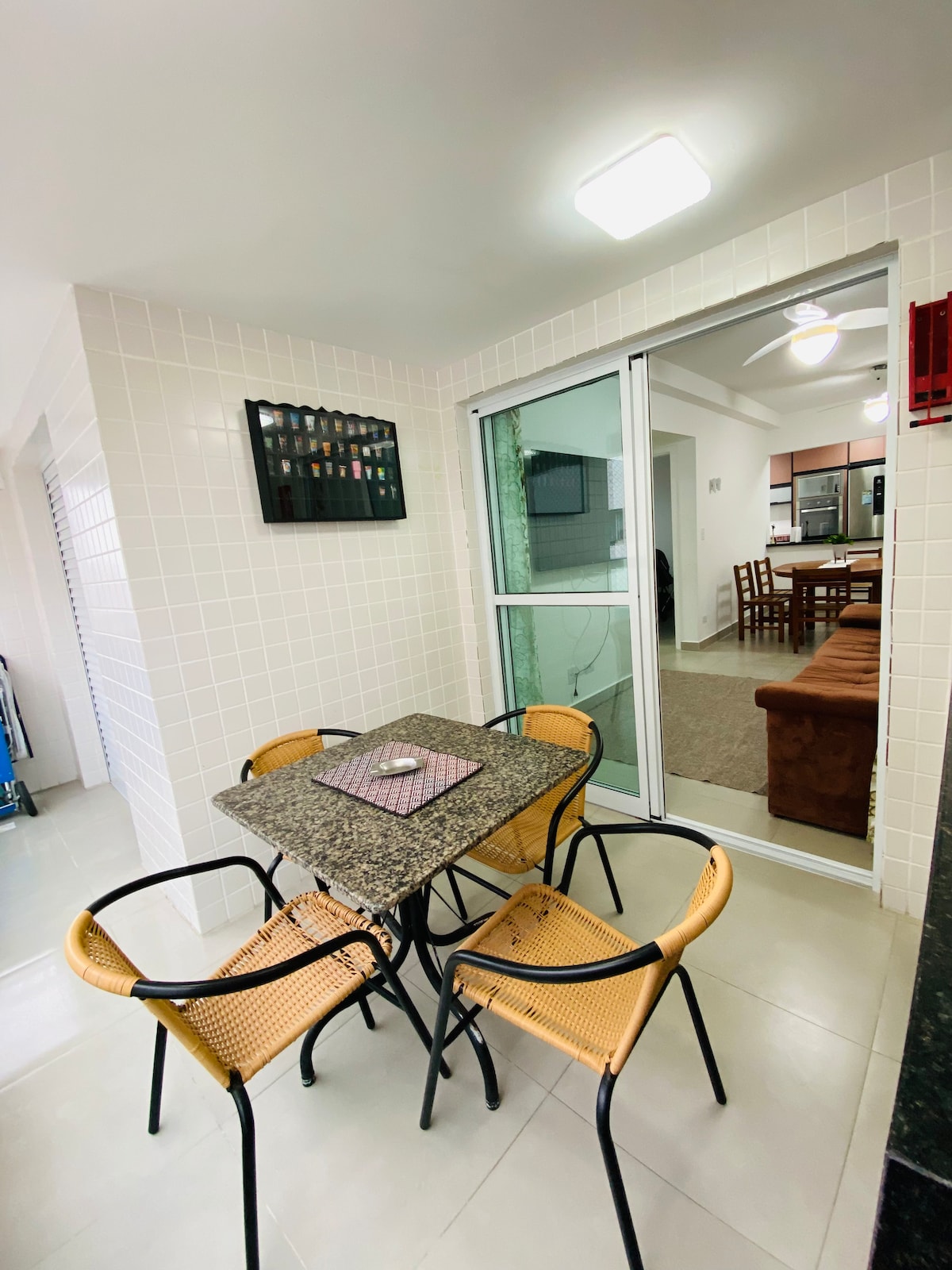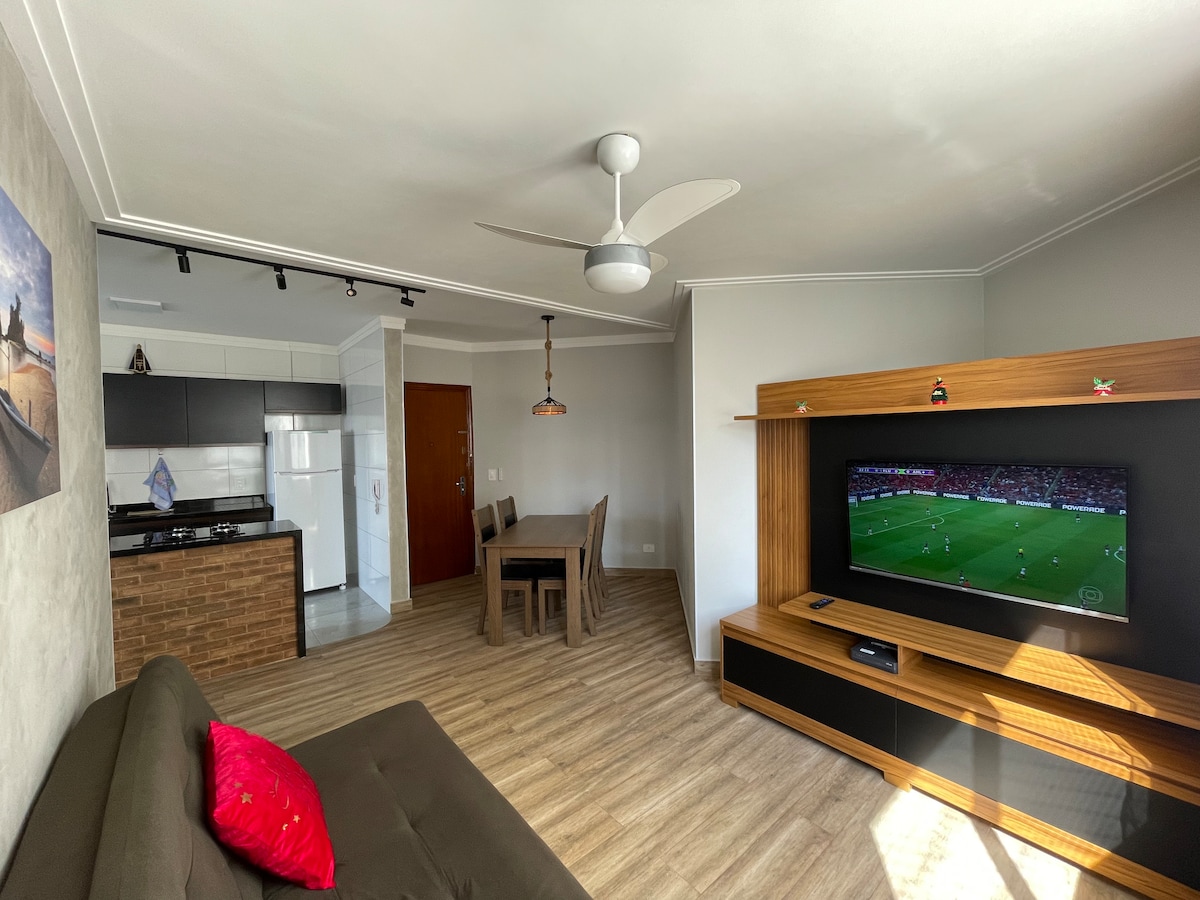 Apto pé na areia com vaga de garagem próximo a restaurante, barzinhos, farmácia, supermercados, etc. PRAIA GRANDE - SP Apto novo todo mobiliado, super aconchegante, excelente localização, 1 dormitório e 1 wc. Tomadas 110v. Lugar limpo, organizado e pertinho da praia. Tem utensílios domésticos, microondas,cafeteira,fogão, forno, geladeira, Aifryer roupas de cama, e banho . Tv smart, ar condicionado e Wi-Fi. Estacionamento 24h,vaga de garagem no shopping não paga nada incluso no apartamento.
