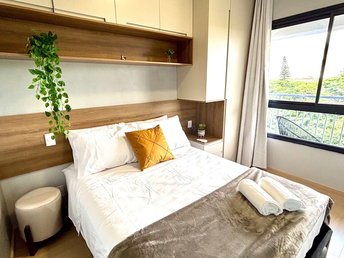 Stúdio com vista | Gym | Piscina Rooftop | Market