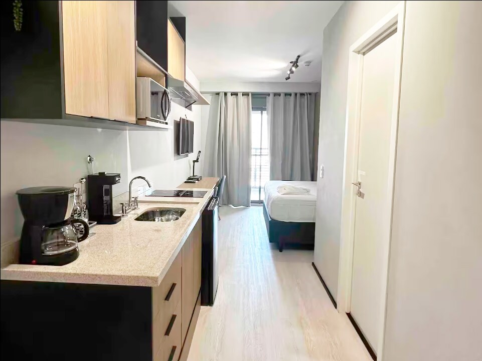 Cerque-se de estilo neste espaço excepcional! Studio completo em prédio super novo (entregue Set 2022) com tudo que você precisa e 01 vaga de garagem! Studio fica ao lado do metrô, pontos de ônibus e principais vias de SP ! 2 salas de Coworking (1 pequena e 1 grande), lavanderia no prédio e mercado no térreo para facilitar sua hospedagem. Portaria 24 hs para sua melhor comodidade e segurança !