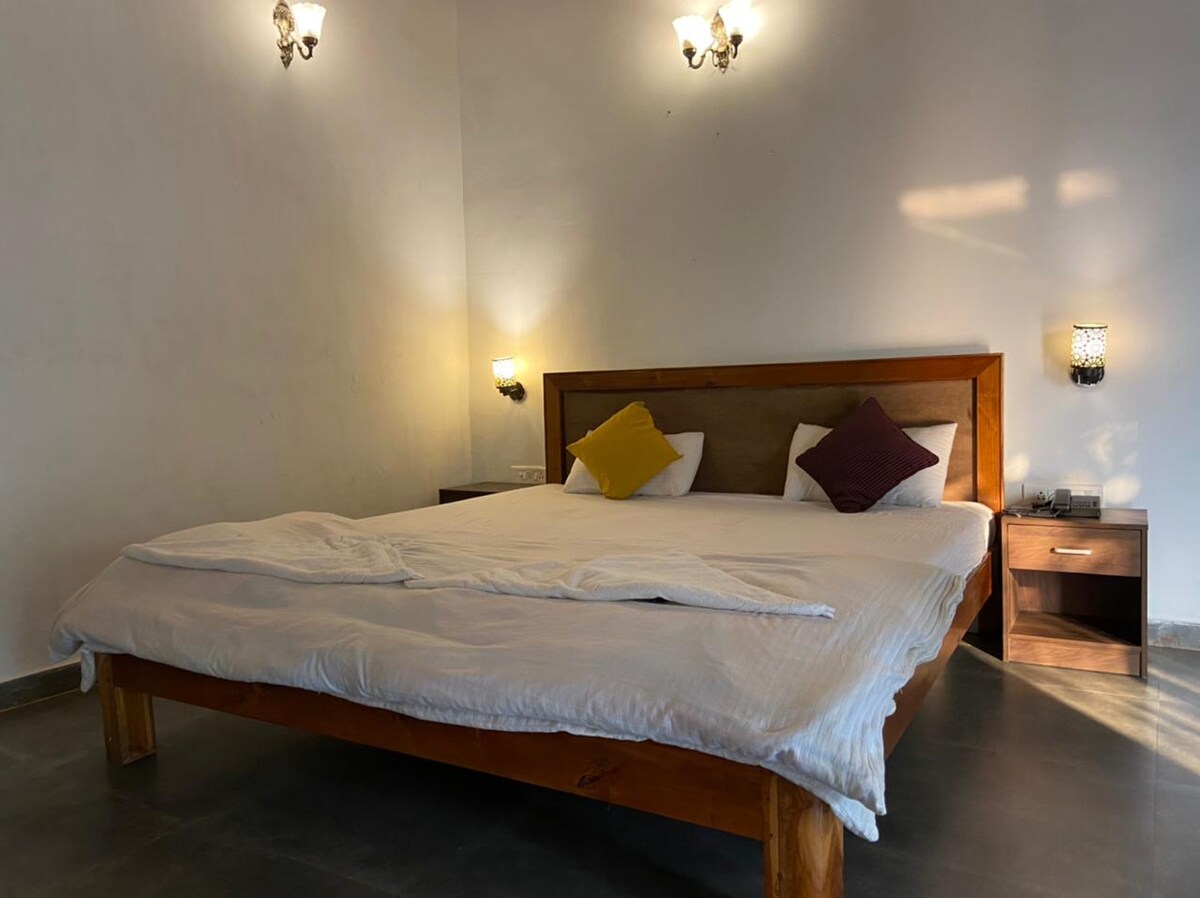 The Classic Rooms at Jumbo Serene, Panchgani offer a cozy, retreat perfect for couples or small families. (these rooms are on ground level) With easy access to the hotel’s large swimming pool, guests can enjoy swimming The property also features fun indoor games like chess and carrom, along with a peaceful garden area for relaxing strolls. To complete your stay, enjoy a meal at the on-site restaurant with scenic views of Panchgani’s natural beauty, making it an ideal destination for leisure.