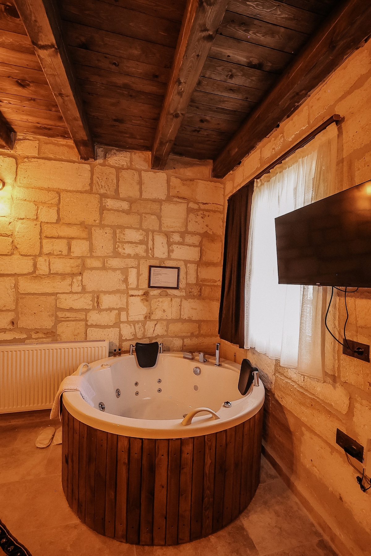 We have just completed the restoration of our hotel. All our rooms and facilities have been renovated. Our rooms have been redesigned in accordance with the texture of the region and in a modern way. Most of our rooms are cave rooms and we have a few arched stone rooms. Some of our rooms have bathtubs and fairy chimney views. Every morning, a rich breakfast is served on the terrace, accompanied by the magnificent sunrise. Guests can enjoy the view of hot air balloons rising over the valley.