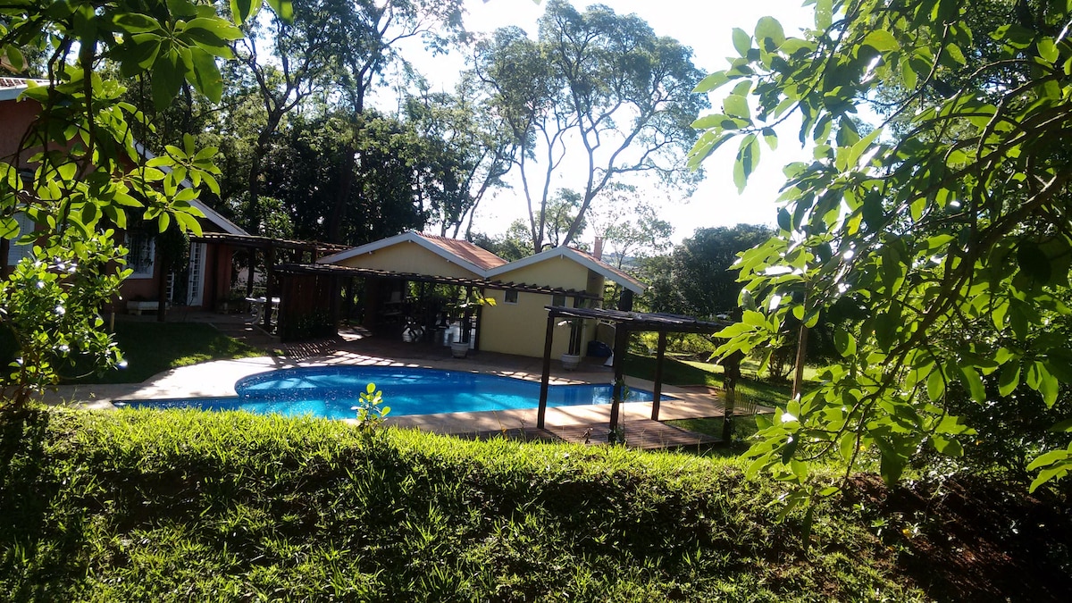 Casa de Campo Ideal para Amigos e Familiares com pets Toda cercada c/ muro/alambrado. Somos flexíveis com horario check-in/check-out. 3 suítes Banheiro adicional para a piscina Churrasqueira e forno de pizza Casa equipada com louças, talheres, copos, pratos, etc. Fornecemos jogos de cama (não fornecemos toalhas de banho) Wi-Fi fibra ótica de 500megas. Bela vista para a represa Jurumirim. Cama para 7 pessoas, com possibilidade de disponibilizar um colchão adicional para uma oitava pessoa. Smartv