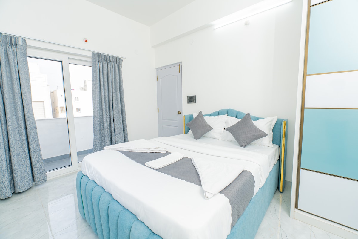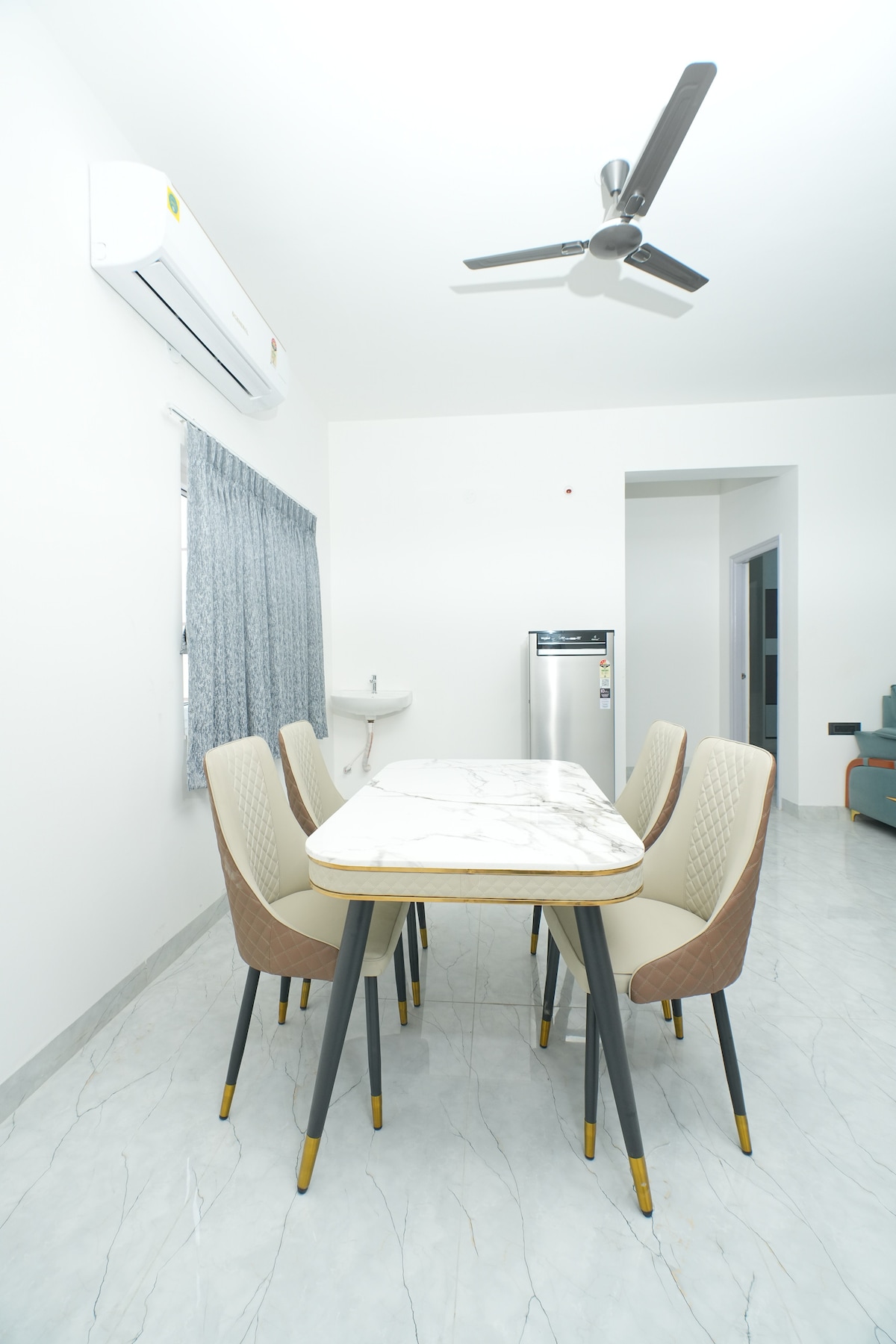 Discover your spacious 3-bedroom sanctuary in Hyderabad's Hitech City. Perfect for families or professionals, this elegant apartment comfortably fits groups and features dedicated workstations in each room, a fully equipped kitchen, and full AC. Enjoy two living areas, private balconies, and the convenience of a secure, quiet community just moments from the city's IT hub. Your ideal home for work and leisure awaits.