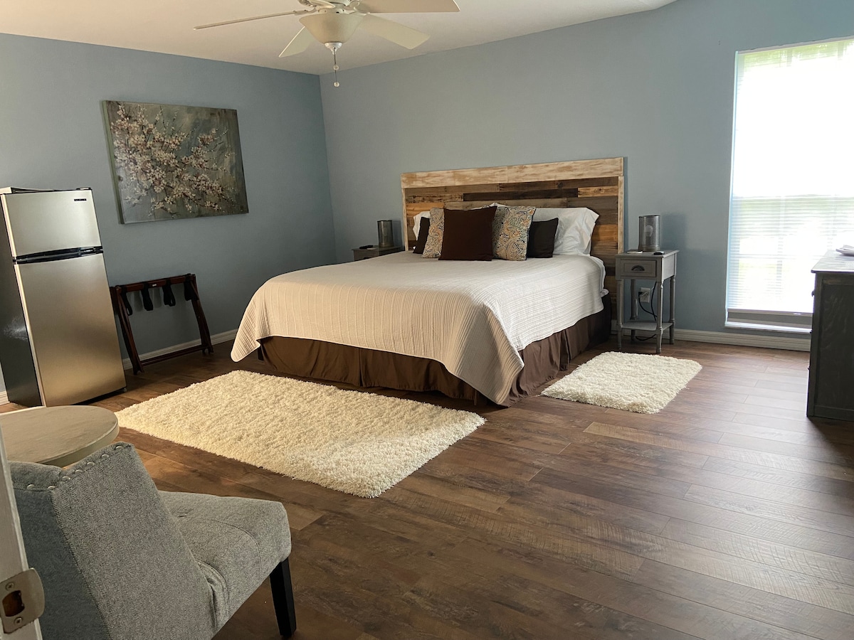 Your private modern studio oasis awaits! Separate entrance, designated parking, queen bed, and loveseat pull-out make it ideal for couples, solo travelers, or small families. Relax on the patio or cook light meals in the kitchenette with induction cooktop, air fryer, fridge, and coffee bar. Minutes from Naples beaches, trails, dining, Great Wolf Lodge, and local shops—comfort and convenience in Golden Gate Estates!