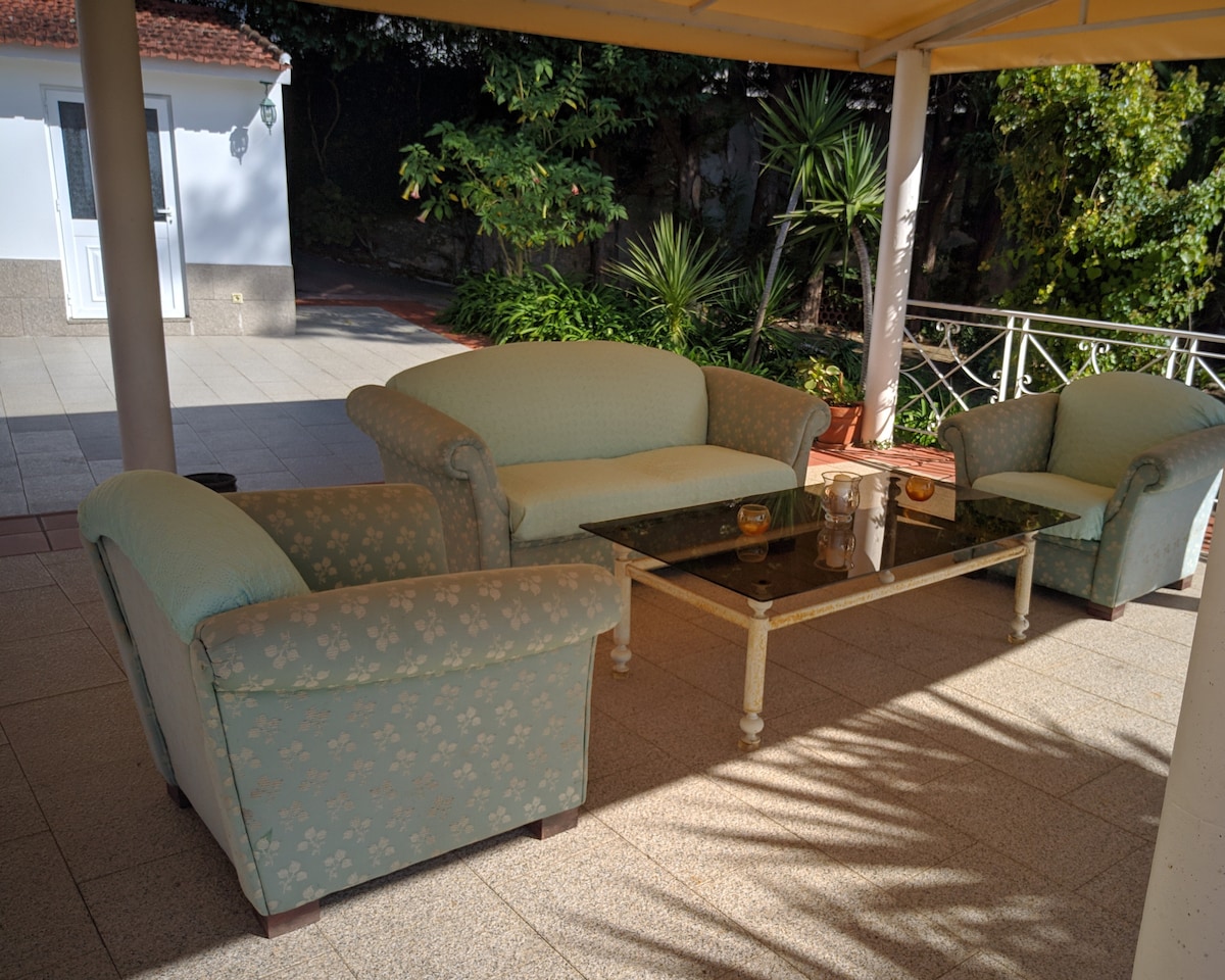 The holiday bungalow (approx. 70 m²) is located on an estate with a renovated, antique mansion house near Aveiro (25 km), Porto (50 km) and Coimbra (65 km). For the guests of this bungalow, there are three terraces: a small terrace bordered by hedges, another large terrace with barbecue and seating and a roof terrace from which, depending on the weather, you can see the sea in the distance. The 5000 m² lower garden has footpaths, countless trees, shrubs and a fish pond.