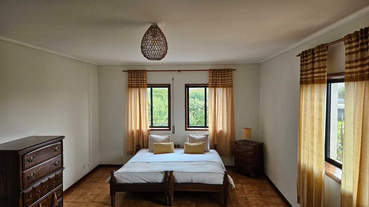 Between a Lagoon and the Atlantic on a nature filled peninsula,Natural reserve close by. Quite isolated and peaceful, great for walks and contemplating. Very safe. Guest house is separate from my place but in the same property. It comprises 3 large double rooms with 3 double beds.Has a fully equipped kitchenette, dinning area, satélite TV, 2 bathrooms (1 en suite), furnished garden with several seating areas and BBQ. Parking and WiFi are free. Playful dog on the property