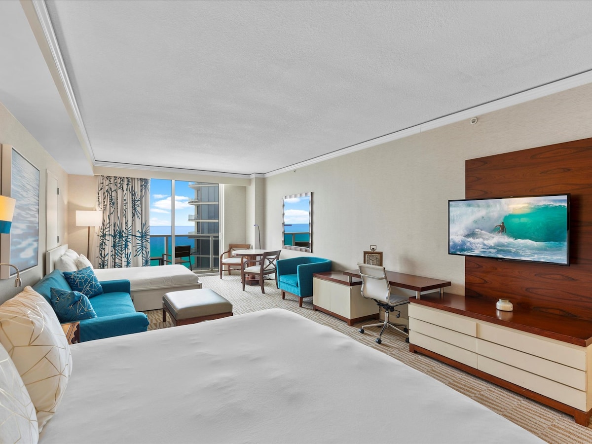 Te invitamos a disfrutar de nuestro habitación de hotel (200 sq. ft) ubicada en el piso 24 del Marenas Resort, con acceso privado a la playa y las mejores comodidades. Cuenta con una habitación luminosa, cama KING, baño con bañadera c/ ducha y un hermoso balcón con la mejor vista de playa de Sunny Isles. FEES TO BE PAY AT CHECK IN : Hotel fees are: $49.55 per night, resort fee - mandatory.(includes pool / beach chairs,towels and umbrella) $35 per night valet parking fee CHECK IN +21