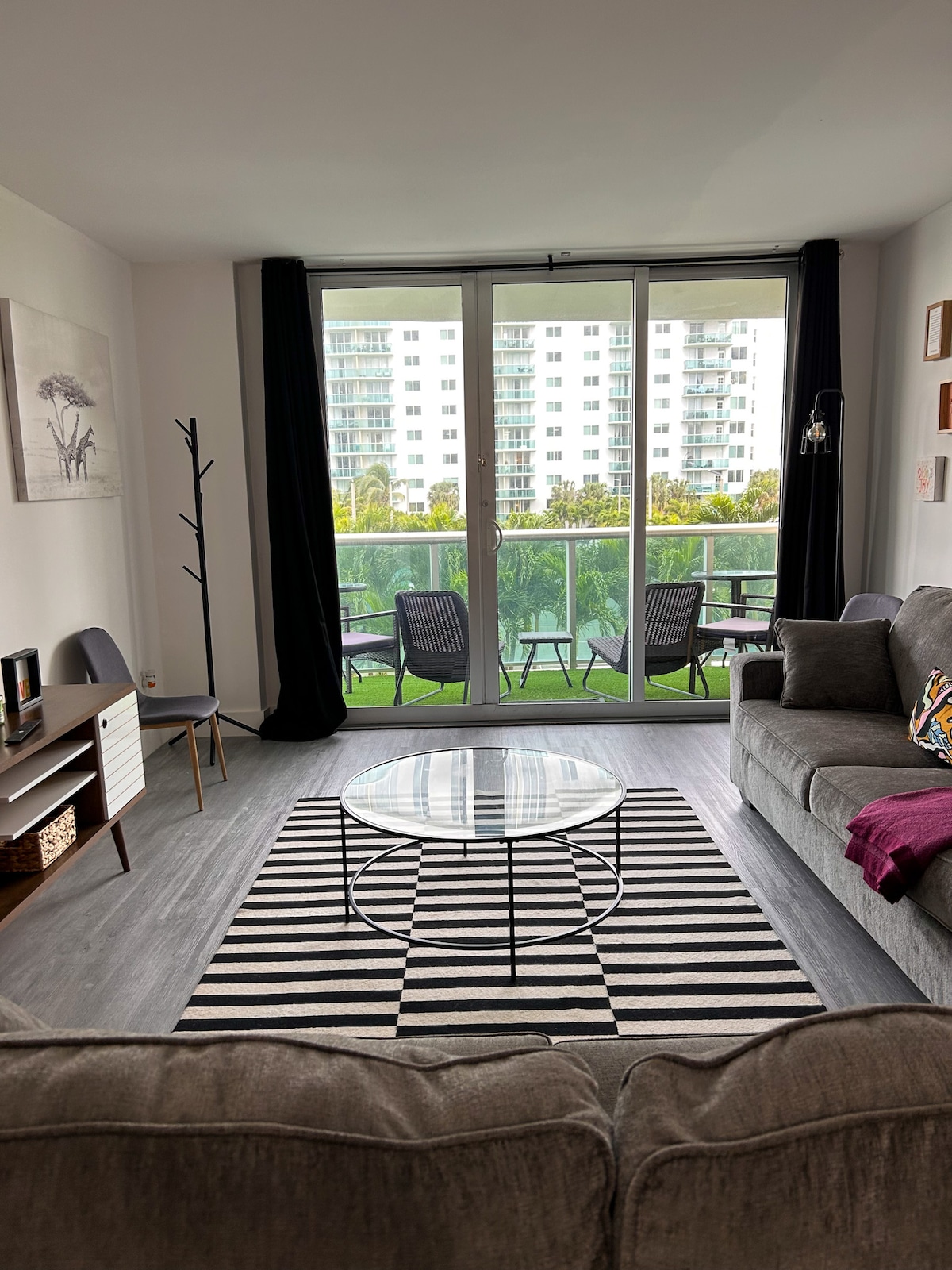 Moderno departamento de 1 dormitorio, 1 baño, 1 Toilette, Living, Comedor , Cocina y Balcon con vista excelente al Intercostal situado en el Ocean Reserve Condominium (19370 Collins Ave, Sunny Isles Beach, FL) a metros de la playa y a 5 minutos del Aventura Mall. Este cómodo apartamento (alrededor de 1000 pies cuadrados) tiene todo lo necesario para su cómoda estadía. Está completamente amueblado y equipado para un máximo de 3 personas.
