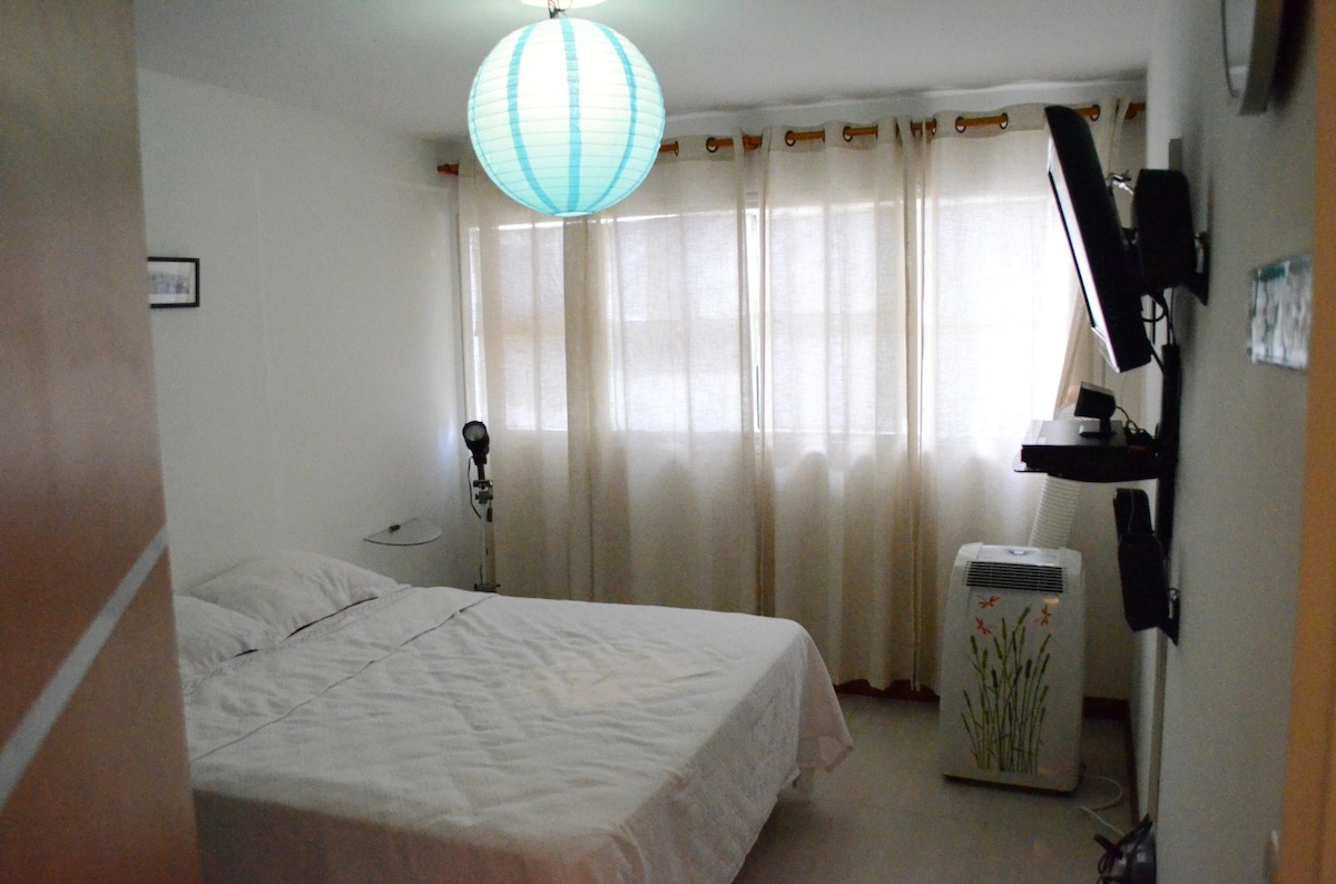 Amplio apartamento con 3 habitaciones y 2 baños que le permiten a grupos familiares disfrutar de una estancia cómoda y agradable. El edificio está ubicado en una zona residencial tranquila, cerca de centros comerciales, farmacias, supermercados y un parque con pista de karting. El apartamento cuenta con 1 cama queen y 2 camas matrimoniales. Dos baños completos, internet de alta velocidad, una cocina totalmente equipada, lavadora, secadora y 2 puestos de estacionamiento.