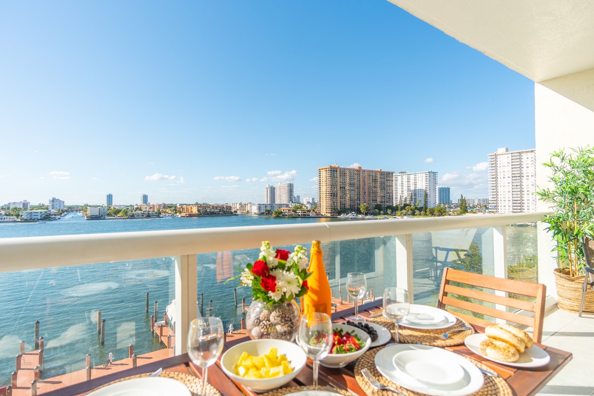 Chic 2BR Waterfront in Aventura -mins Beach & Mall
