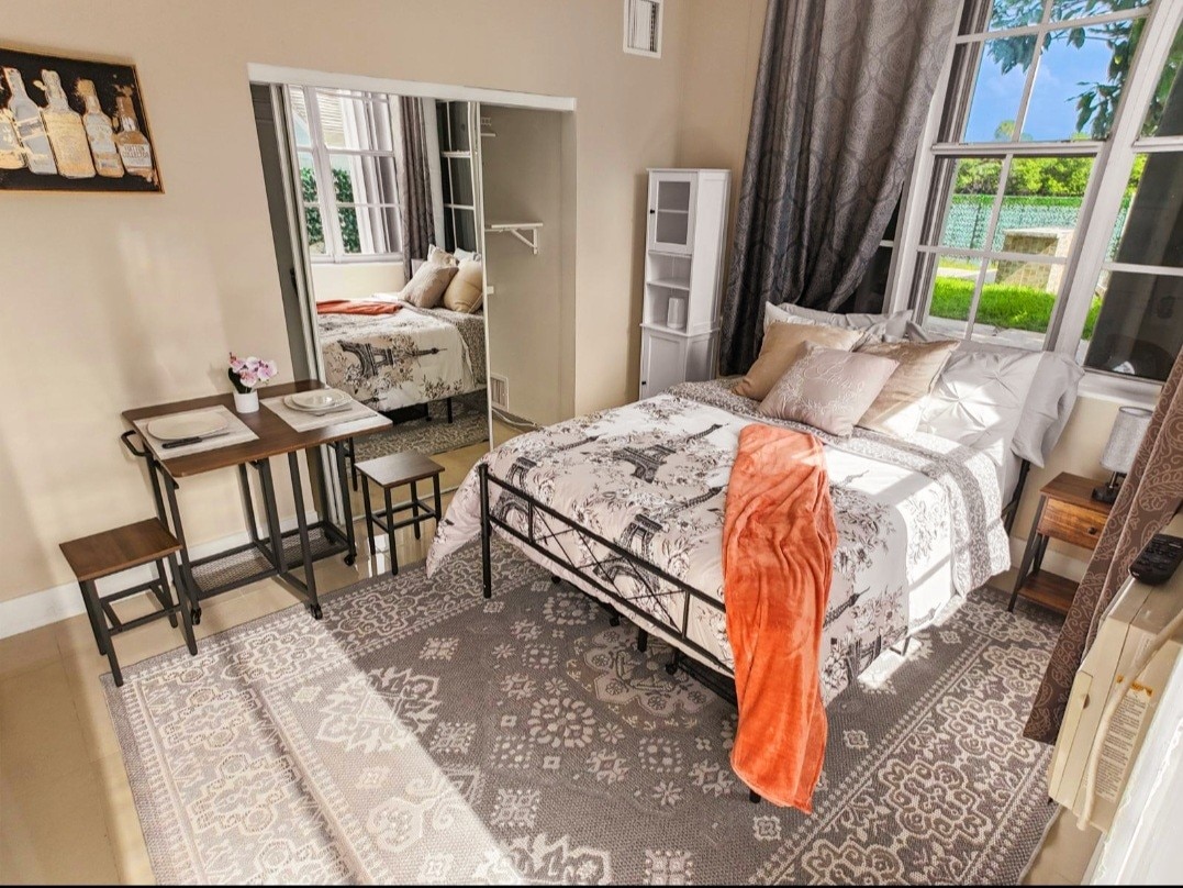 Our private & cozy Hallandale Guesthouse is centrally located near all main attractions and comes equip with everything needed to enjoy your visit in So. FL. Working & traveling? Take advantage of our workspace, rolling desk chair, surge protectors, smart lamps & FAST wifi. Hassel-free private parking & entrance, keyless keypad for self checkin. Fully stocked kitchen and coffee bar for meal preppers and caffeine drinkers. Nearby Beaches, Ft Lauderdale Airport, Hard Rock, Gulfstream Park & more.