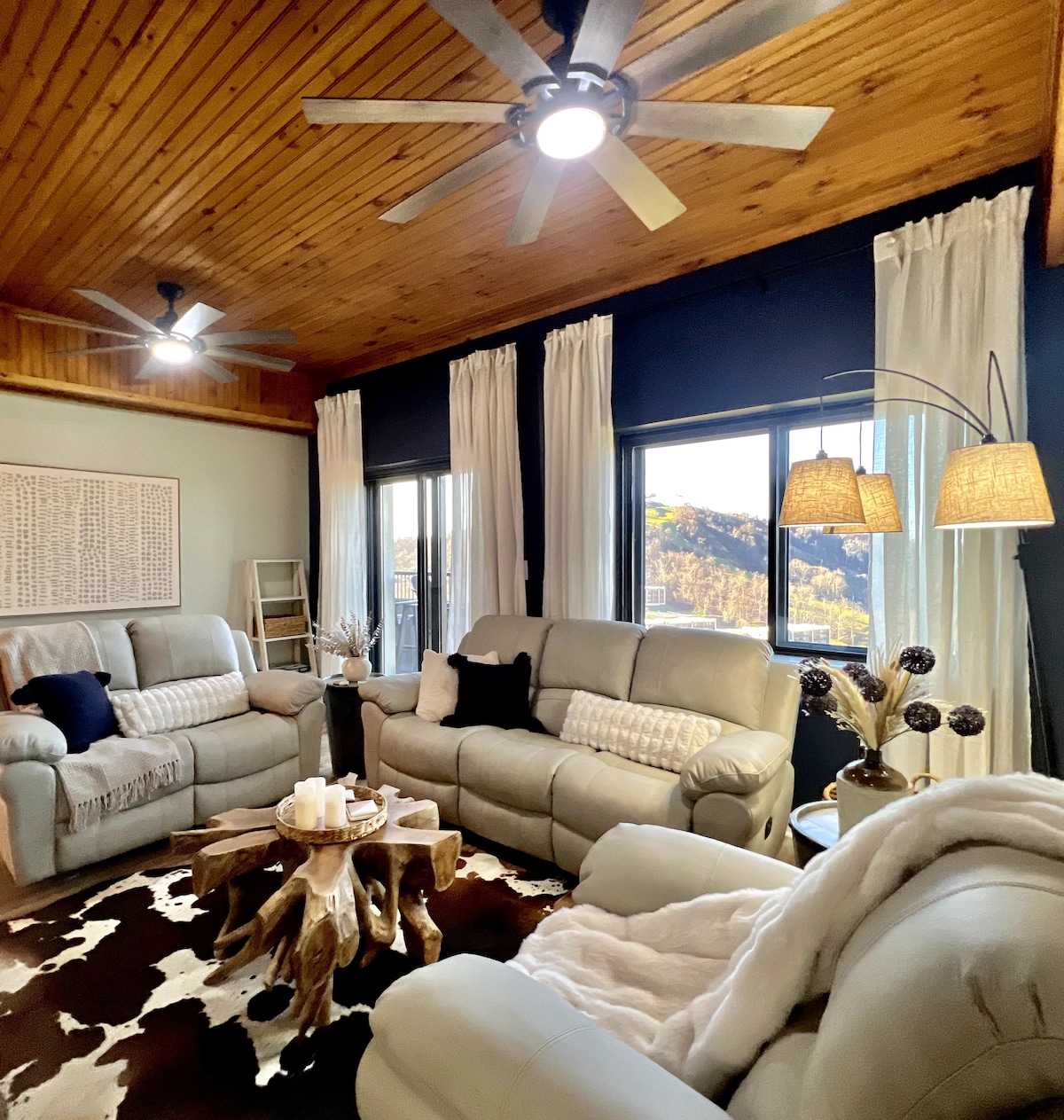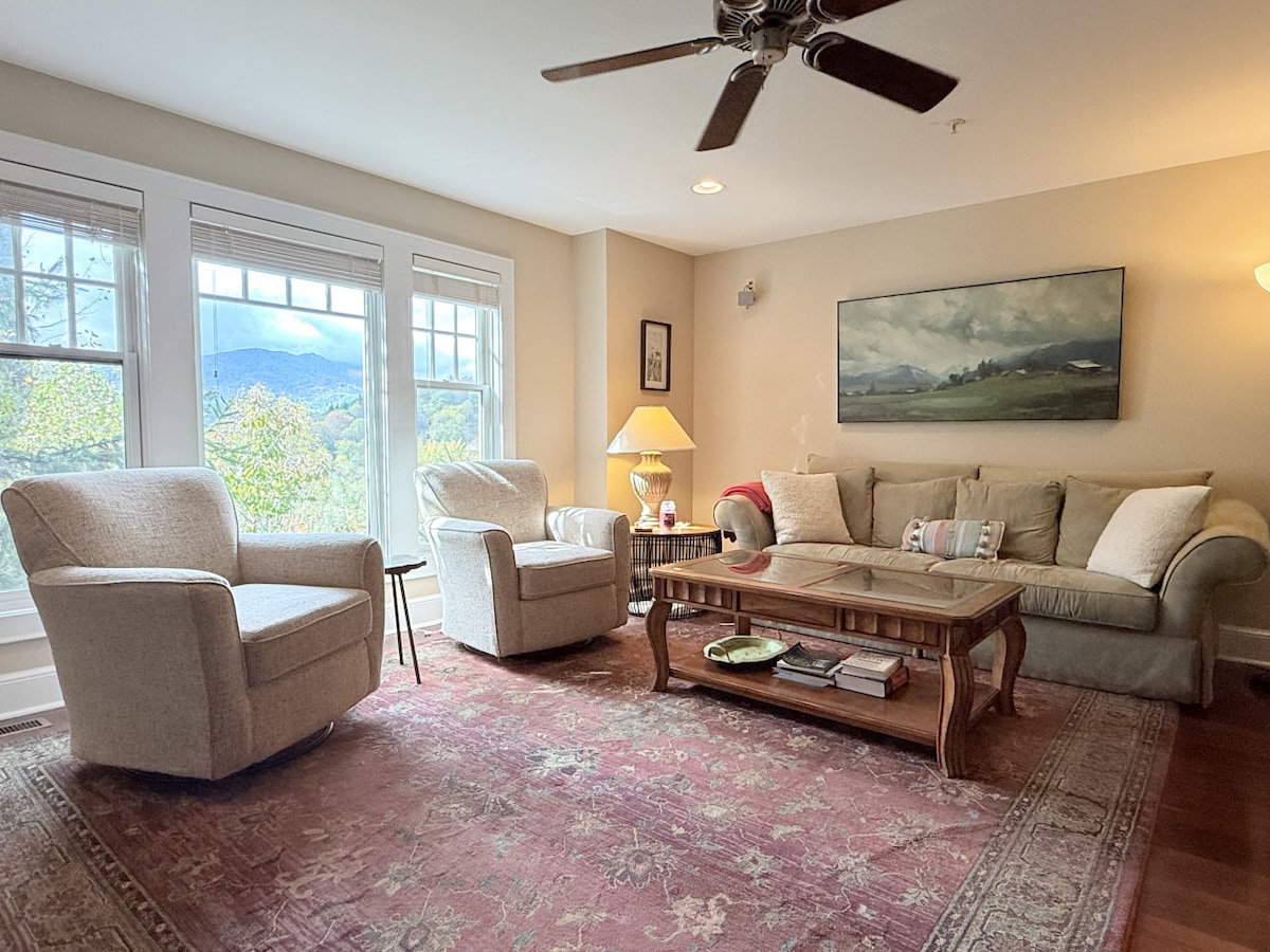 Your family will make wonderful memories in our stunning top floor home, with panoramic views of the Sugar Mountain Ski Resort and the Blue Ridge Mountains. We've created a comfortable sanctuary featuring vinyl plank floors, a beautiful kitchen, smart TVs in every room and full-size washer and dryer. The private main suite features a king-size bed with a comfy memory foam mattress. The second bedroom has a queen bed with memory foam. Plus, there's a queen pullout couch for extra guests.