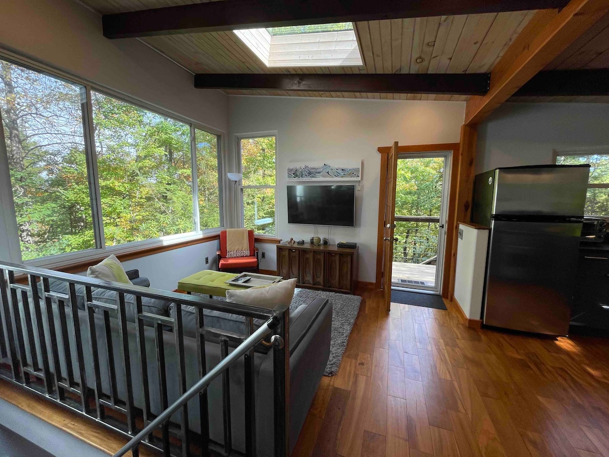 To be clear, limiting the number of guests to 2 people.perfect for a couples getaway! Completely renovated cabin with all modern amenities. teak/tile floors. Stainless/granite kitchen and bar. Frameless glass shower. Huge windows/skylights. Sleep amongst the trees....like a treehouse but Better! Privacy. Decks/ hot tub! High end mid century furnishings! Hike into The Linville Gorge from back door! The Linville Gorge is the Grand Canyon of the East.....a hidden gem that you must see to believe