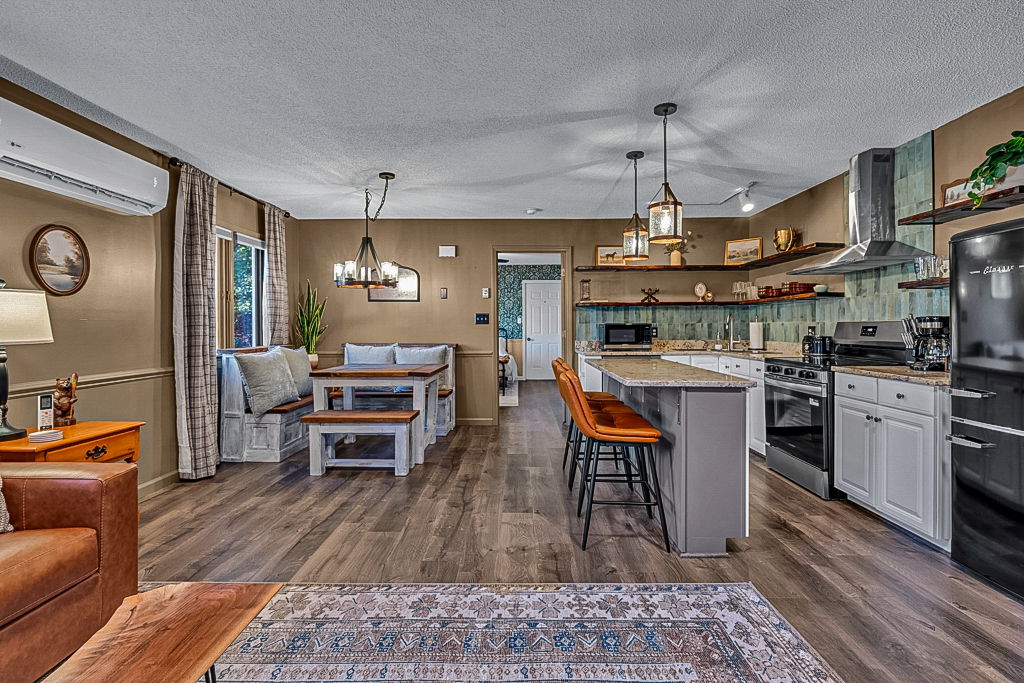The Crab Orchard Guesthouse is tucked in the trees down a short gravel road. This 1 BR, 1 BA home offers guests a place to relax in or outdoors along the Crab Orchard Creek. Ideally located near hiking trails, historic Valle Crucis, the original Mast General Store & Annex, Valle Crucis Park, Grandfather Vineyard & Winery & the town of Banner Elk. There are 2 rentals on the property. The driveway/parking area is shared. Booking both properties together is an option. Dogs allowed with a fee.