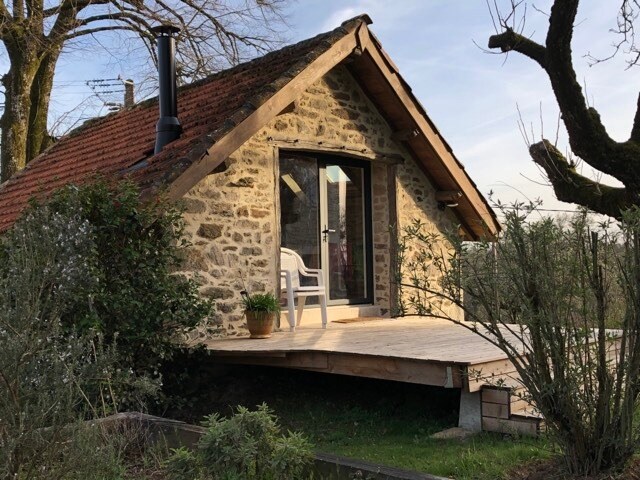 Unconventional accommodation in a green setting. You will hear the sound of birds and the song of the stream for a guaranteed rest with no other noises than those of nature. A romantic getaway as well for a cozy evening by the stove in winter or on a sunny terrace in summer. The rustic and minimalist aspects are also highlighted: dry toilets, reduced surfaces and layouts but executed with taste and simplicity.