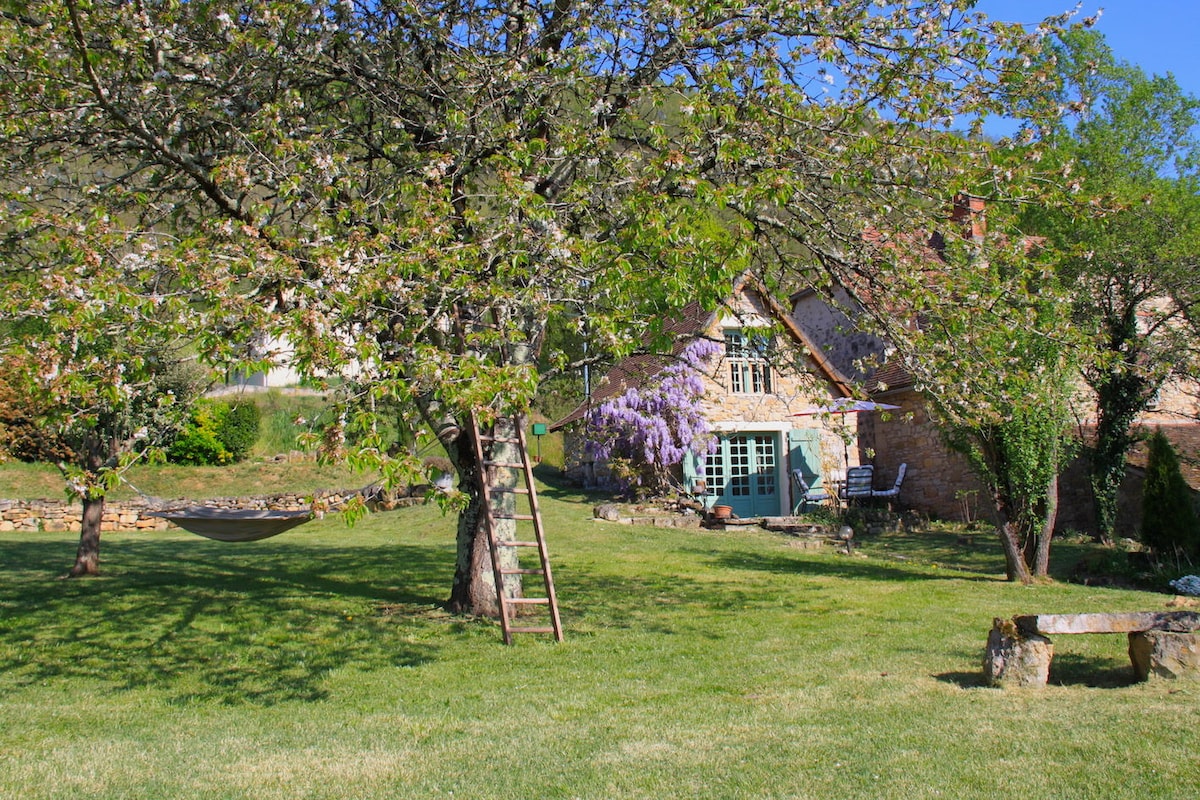 Dans la vallée du Dourdou, à 15 Kms de Conques, sur le chemin de Saint Jacques de Compostelle et à proximité de Salles la Source, Bozouls, Rodez, Millau, Roquefort et des plus beaux villages de France. Très beau gîte au calme dans demeure de charme Terrasse couverte, piscine familiale 5 X 10 m. A 2 pas pêche, randonnée (proximité du GR 62), VTT, canoë, cyclotourisme, etc… Accueil chaleureux et convivial. Du samedi au samedi en pleine saison, possibilité de week-end hors saison .