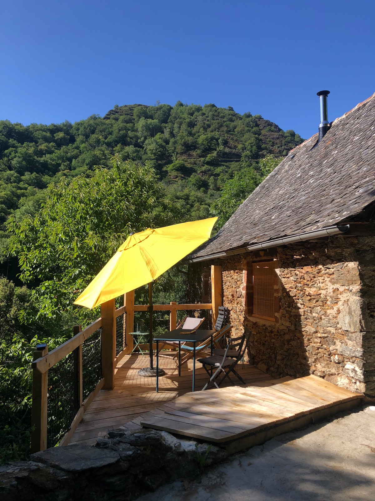 I built my wooden house entirely and finished it in early 2024. I offer it for rent during the high summer season but also during the other 3 seasons which each offer their advantages. The creation of the sauna with its wood stove is to be able to enjoy the swimming pool in all seasons. (paid option) The swimming pool is not overlooked and offers a beautiful view of the valley and its natural landscape. This valley is also home to the village of Conques and its magnificent abbey church.