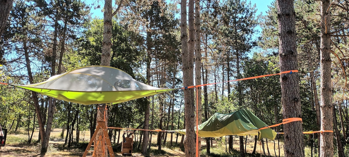 Cybèle, une bulle perchée avec une vue magique sur la vallée. Vivez une expérience inoubliable sous les étoiles perchée dans les arbres. Lové dans un environnement sauvage proche de la rivière, Cybèle est un petit paradis à l'abri des regards. Amis fêtards et trouble-fête, continuez vos recherches ce lieu est dédié au calme. Proche Toulouse, Montpellier, Rodez Romantique Sites touristiques, villages classés, canoë Plage rivière à moins de 5 minutes en voiture Terrasses ombragés
