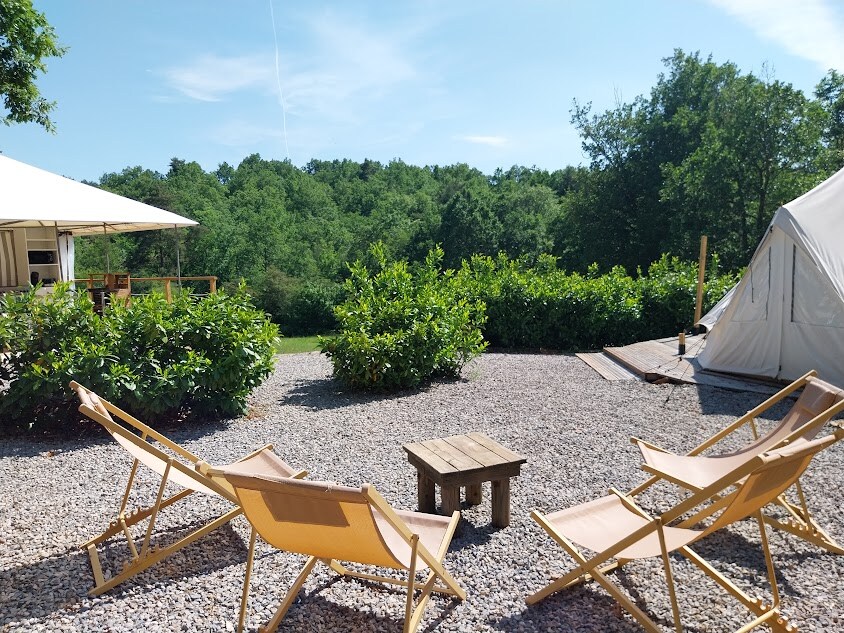 Nouveau site cette année 2021. Venez découvrir un hébergement insolite, un petit coin en pleine nature De belles balades sont possibles tout autour des tentes. Vous pourrez admirer le lever et le coucher du soleil, et aussi observer les animaux sauvages. Nous mettons à votre disposition une table, une douche solaire ainsi que des toilettes séches. Vous serez sur une parcelle de plusieurs hectares et à 5 min en voiture de sebazac. On vous attend pour vivre une vraie et unique nouvelle aventure.